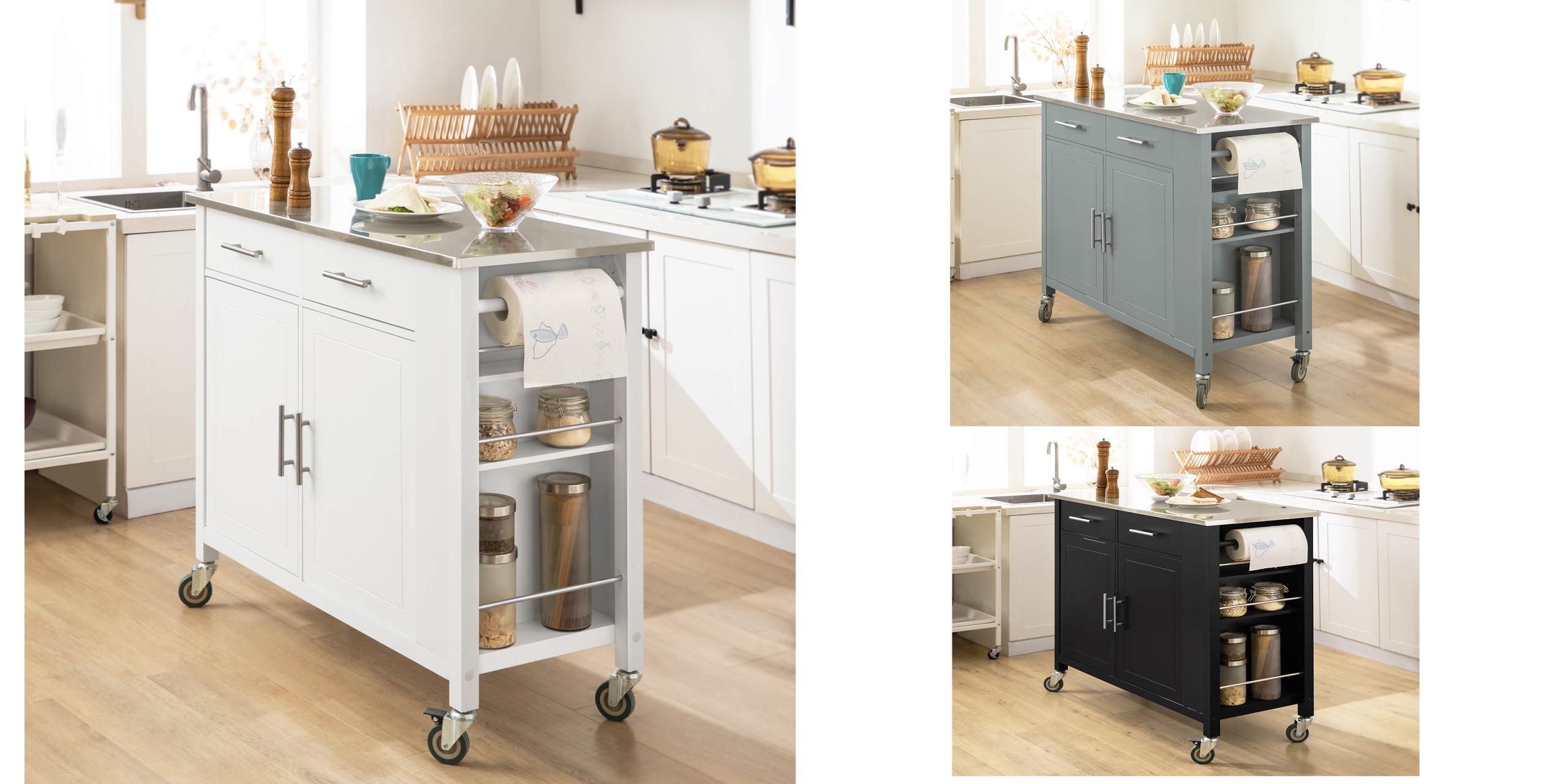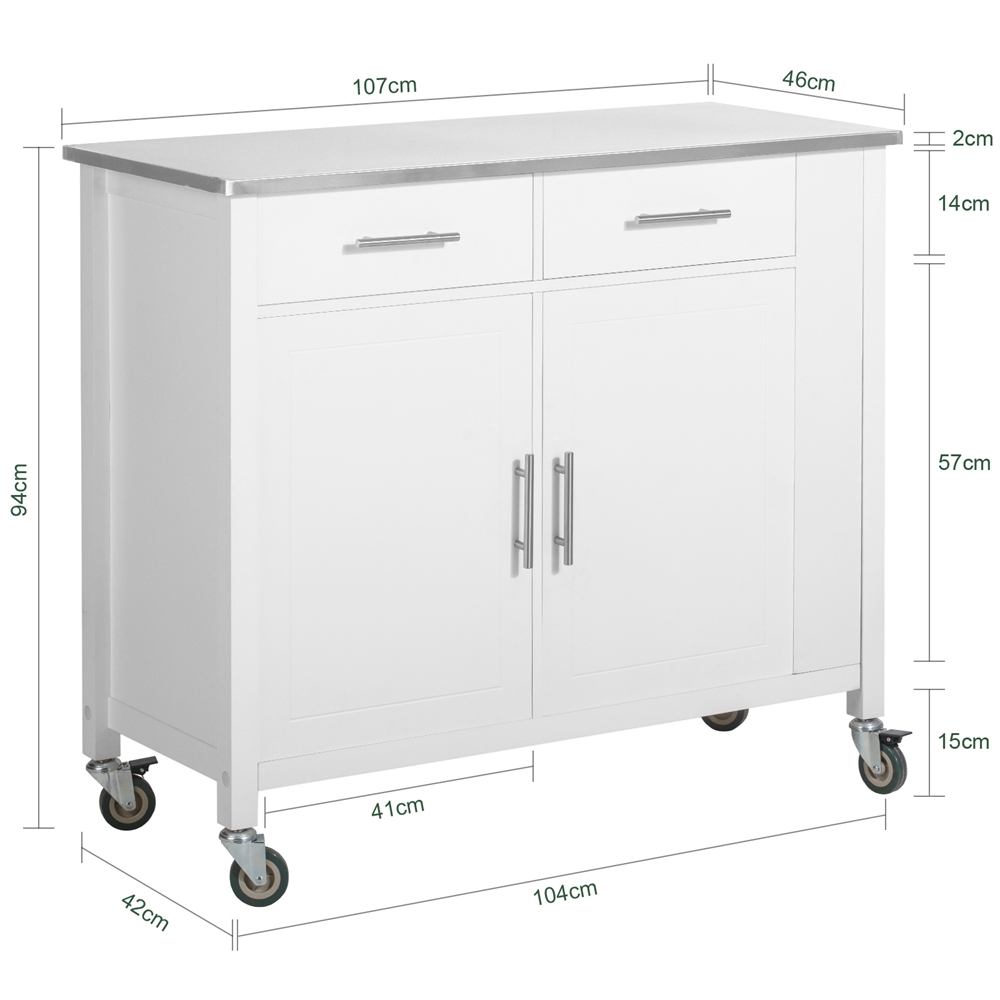 SoBuy Keittiösaareke pyörillä puukuitulevystä ja ruostumattomasta teräksestä valkoinen FKW108-W