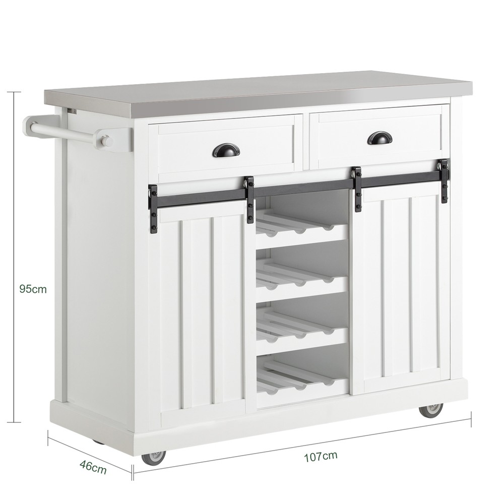 SoBuy Keittiösaareke pyörillä puukuitulevystä ja ruostumattomasta teräksestä valkoinen FKW94-W
