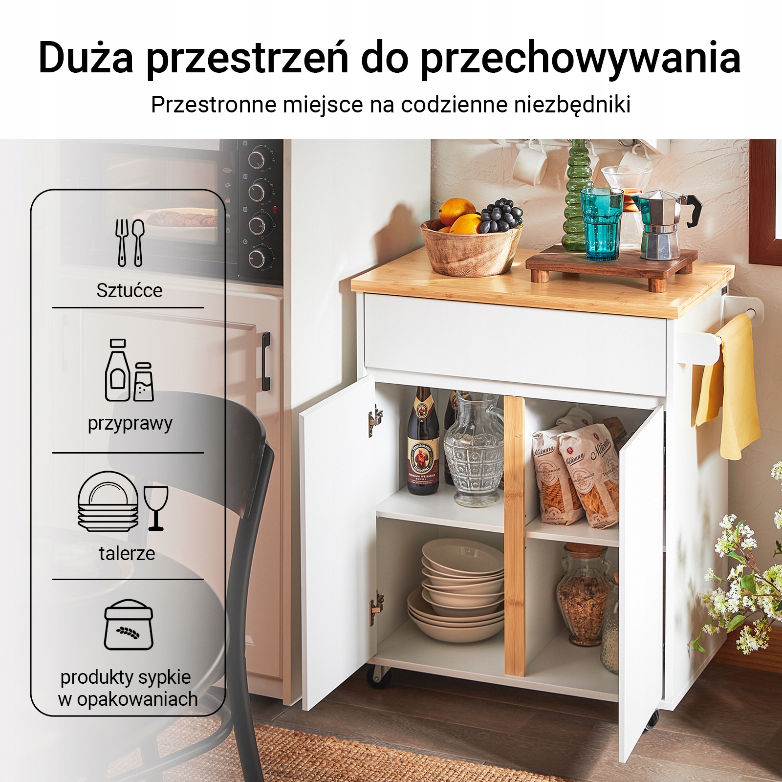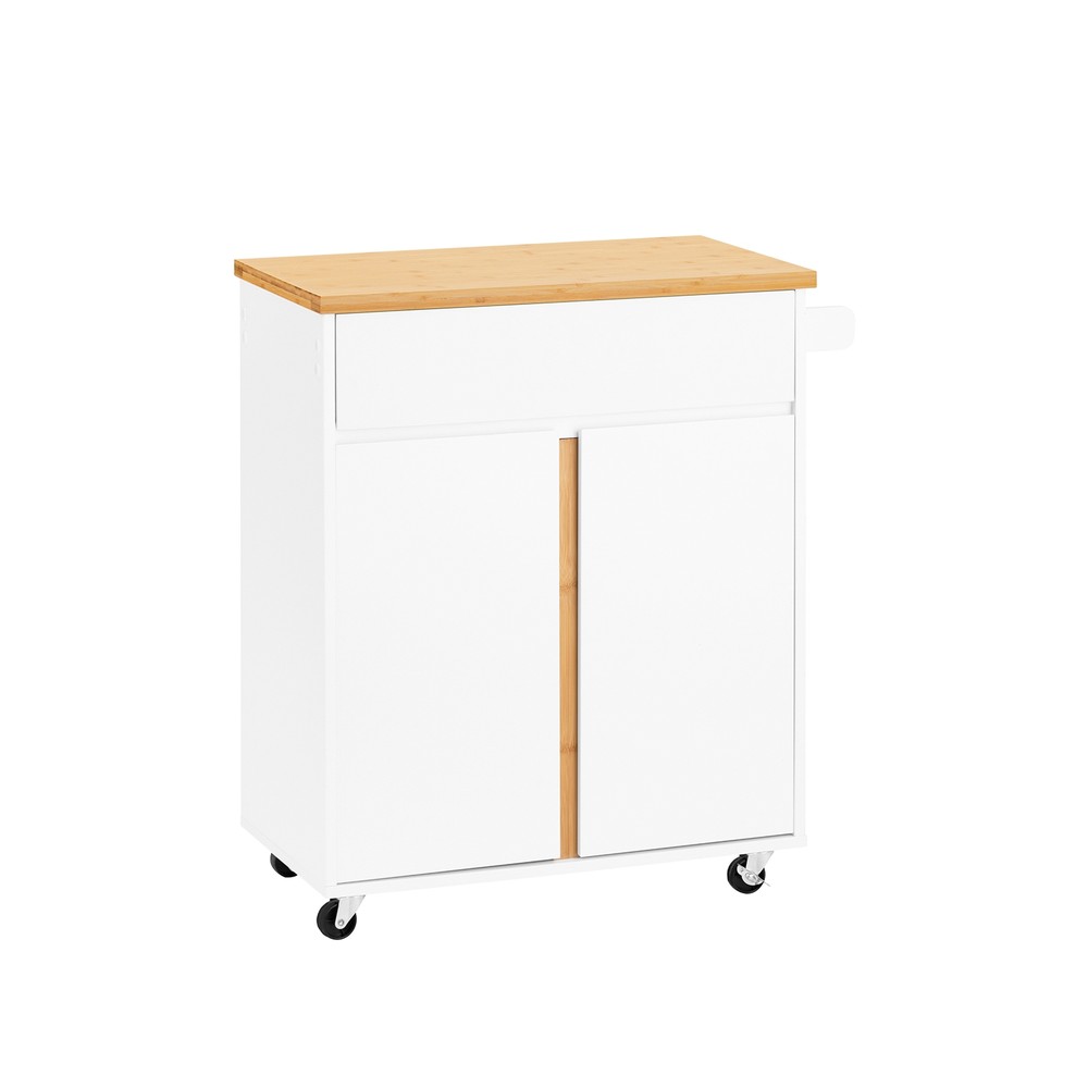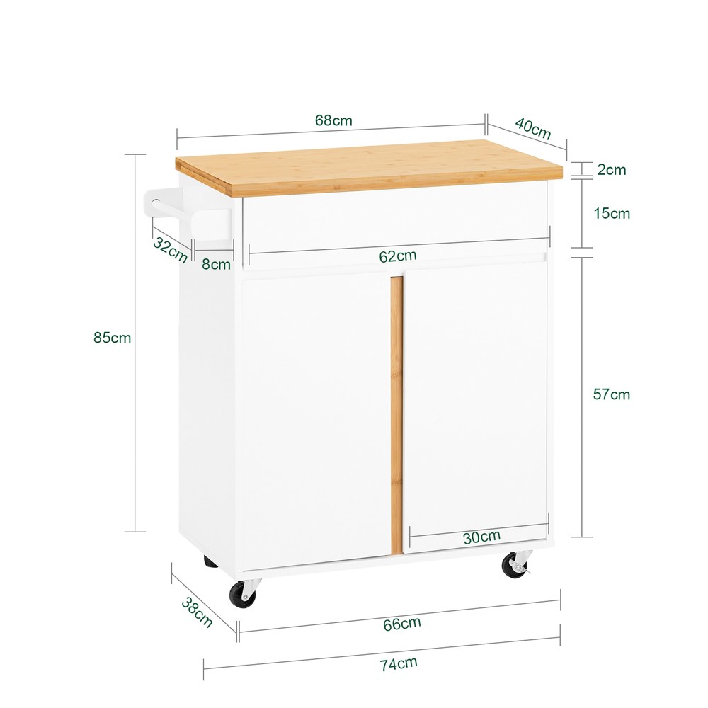 Tämä tyylikäs keittiösaareke sulautuu helposti kotiisi ja sopii lähes mihin tahansa keittiöön. Sen neljä kääntyvää pyörää mahdollistavat helpon liikuttamisen, ja kahdessa pyörässä on turvajarrut.