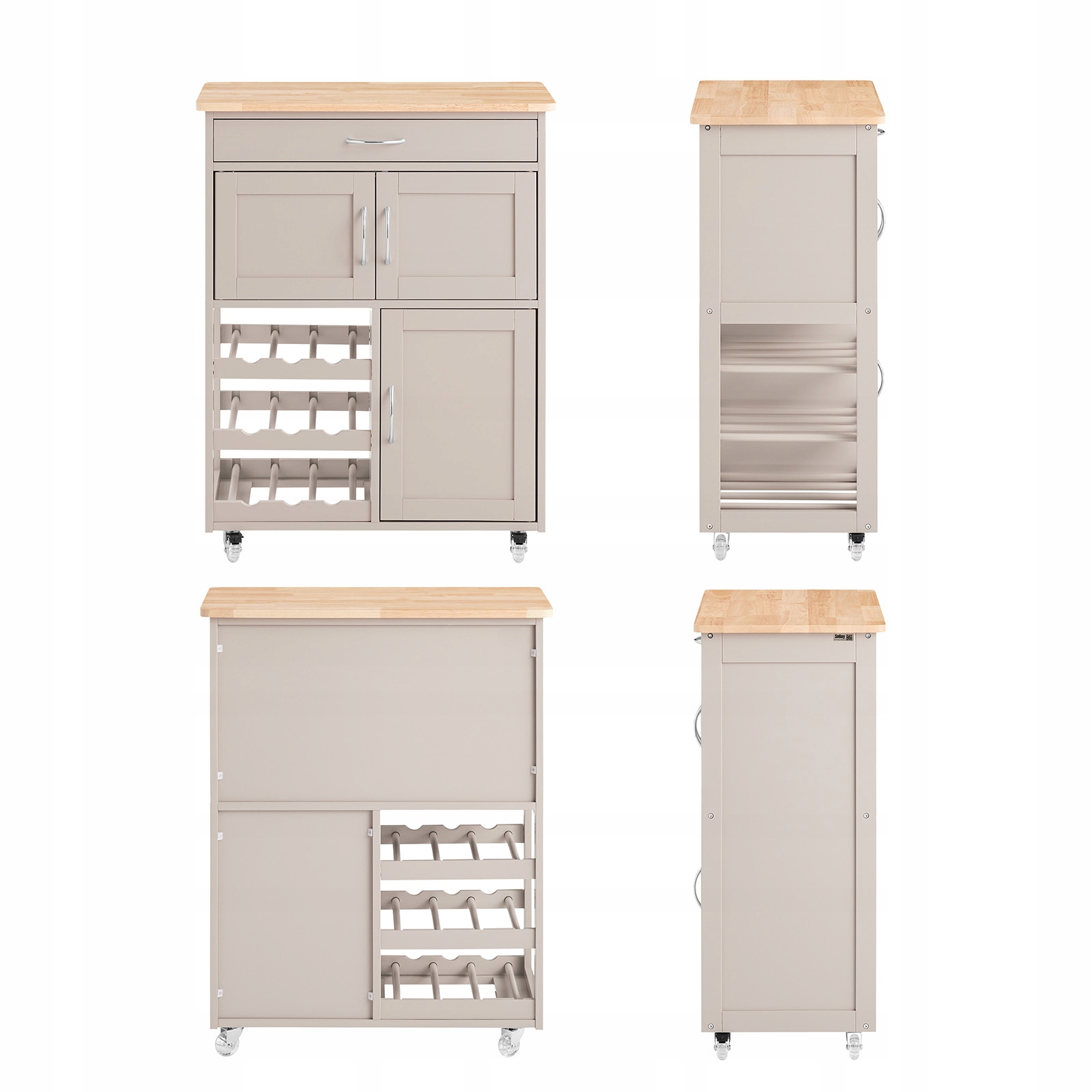 Tämä monikäyttöinen kärry yhdistää runsaan säilytyksen ja kestävän laadun. Siinä on 1 laatikko, 3 ovellista hyllyä ja 3 viinihyllyä. Hevea-kumipuusta valmistettu työtaso on kestävä, helppo puhdistaa ja kosteudensuoja. E1-luokiteltu MDF-levy on ympäristöystävällinen.