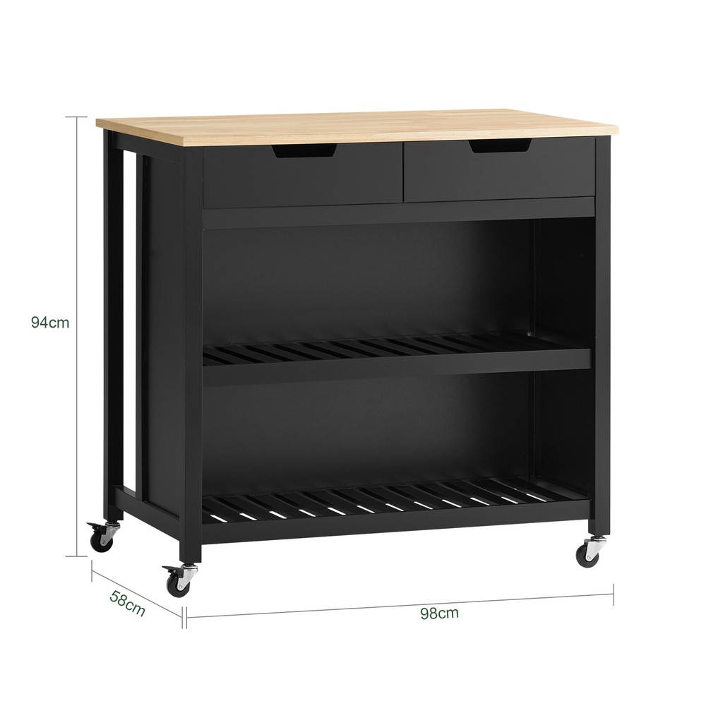 SoBuy Keittiövaunu FKW74-SCH pyörillä luonnonmateriaali...