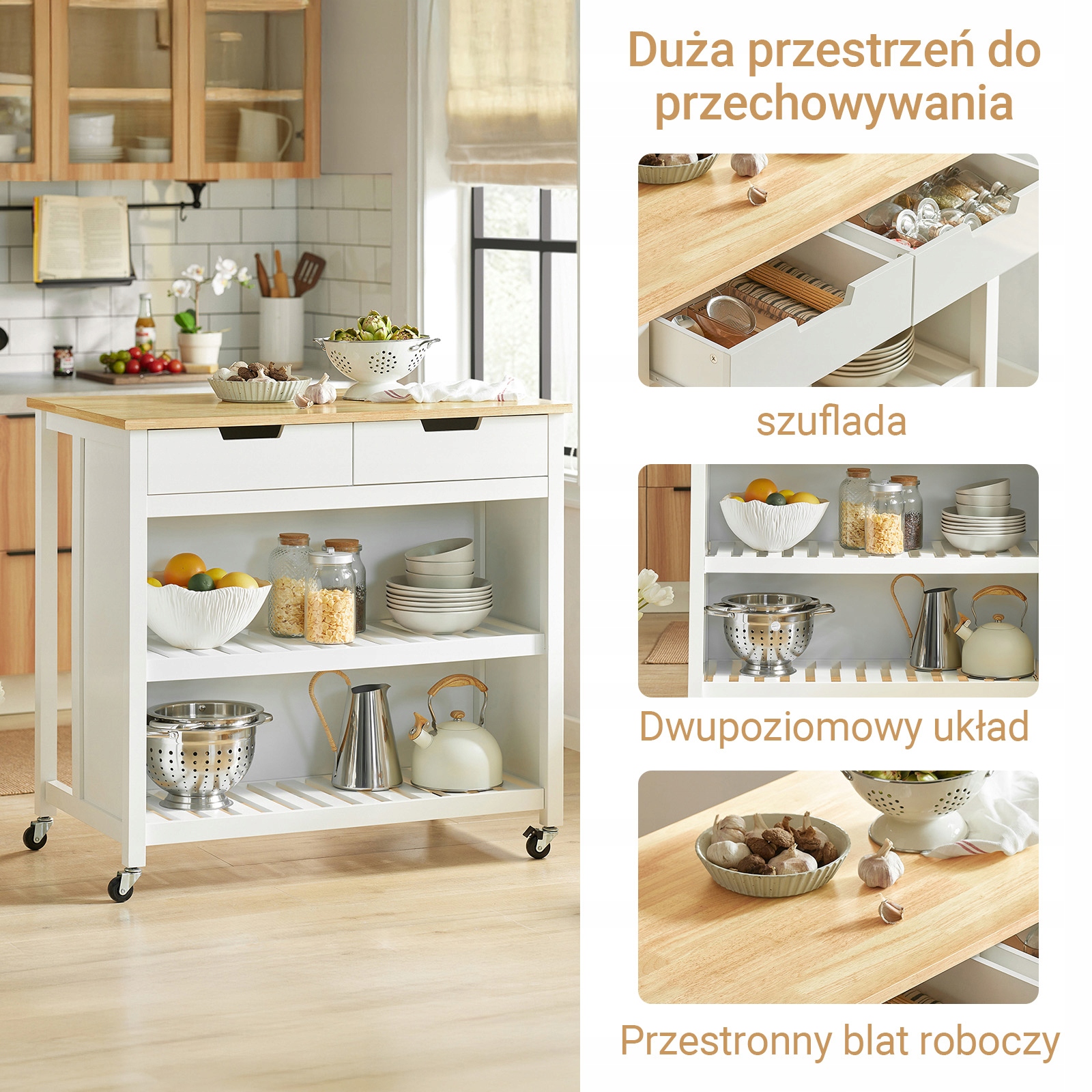 SoBuy keittiösaareke yhdistää tyylikkään pohjoismaisen designin ja kestävän ekologisuuden. Tämä monikäyttöinen ratkaisu on suunniteltu kestämään kodin arkea tiukkojen vakaus- ja kestävyystestien läpi. Hevea-puusta valmistettu pöytälevy (L100 x P60) sekä kahdella ohjattavalla laatikolla varustettu säilytystila tarjoavat runsaasti tilaa kaikille keittiötarvikkeillesi.