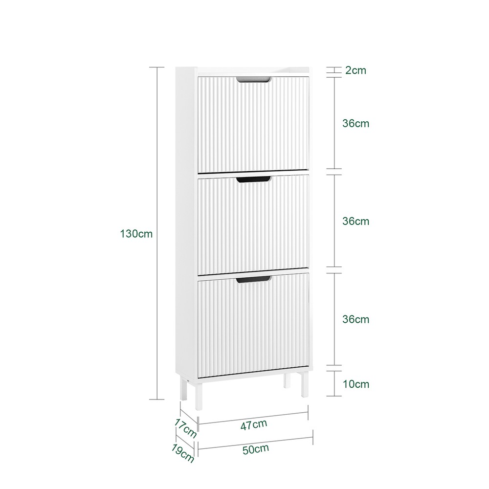 Kenkäkaapissa on 3-oven rakenne. Moniosastoinen sisustus mahdollistaa lenkkareiden, korkokenkien ja saappaiden järjestelyn.