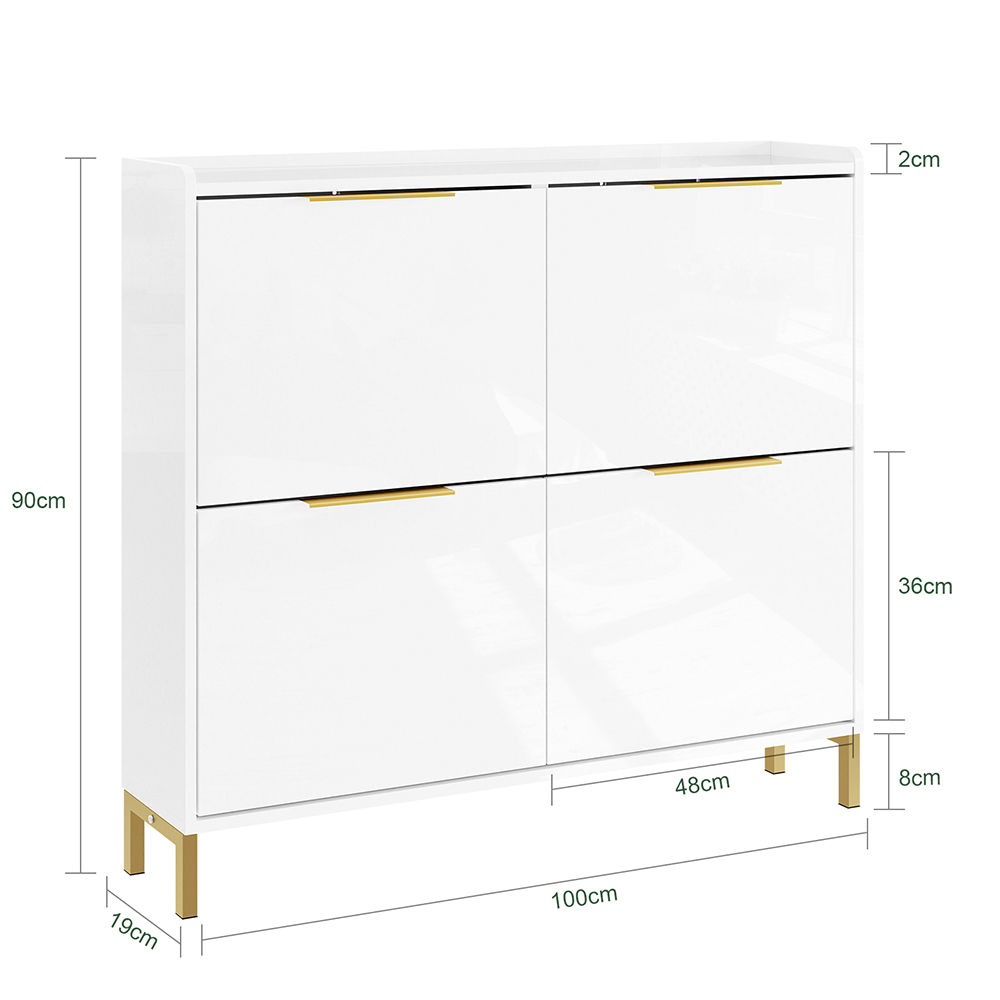 SoBuy Kenkäkaappi 4-ovinen valkoinen 100x19x90 cm FSR206-GW