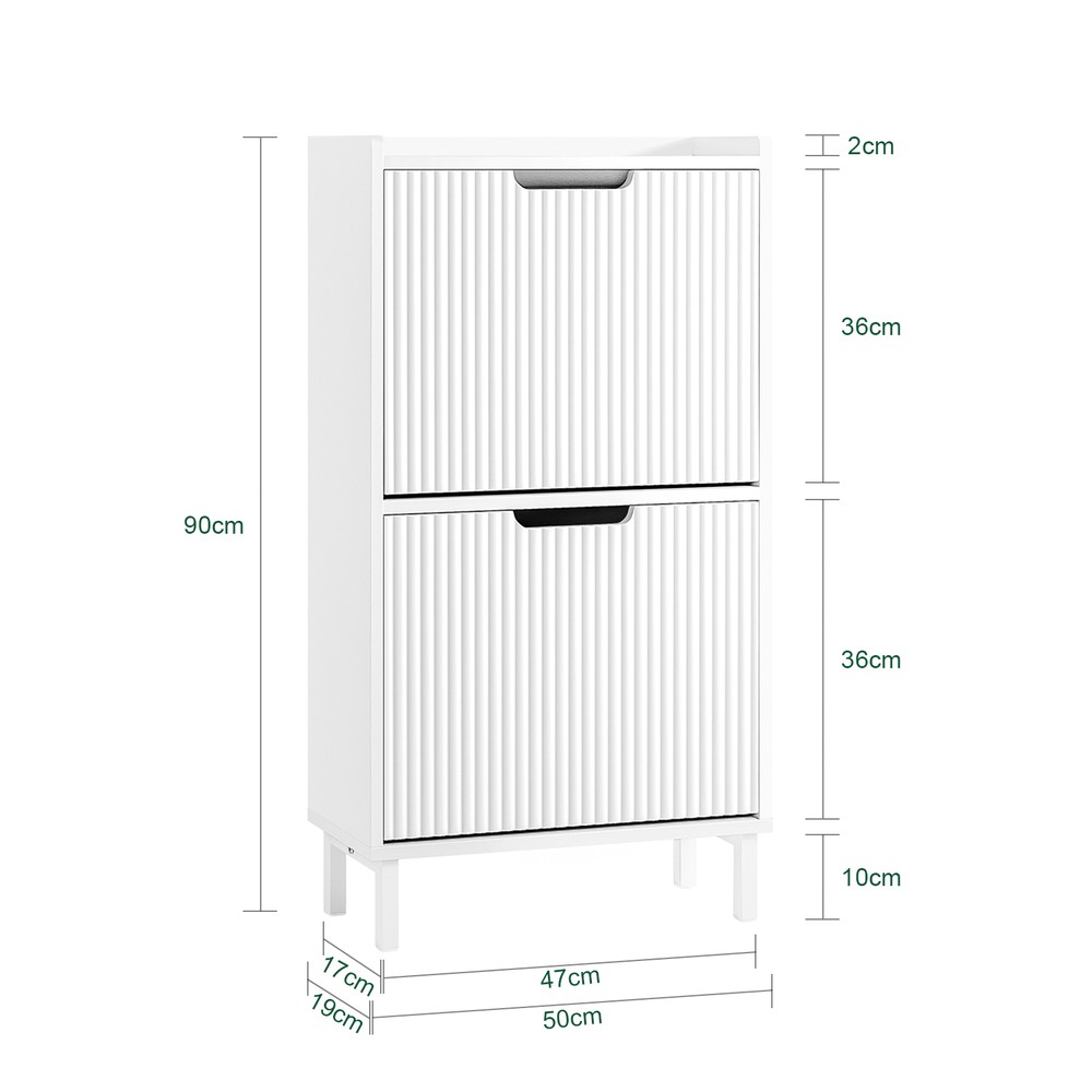SoBuy:n moderni kenkäkaappi tuo tyylikkään ja käytännöllisen ratkaisun kotiisi. Erittäin ohut, vain 19 cm syvä muotoilu sopii täydellisesti kapeisiin suomalaisiin eteisiin ja käytäviin säästäen arvokasta tilaa.