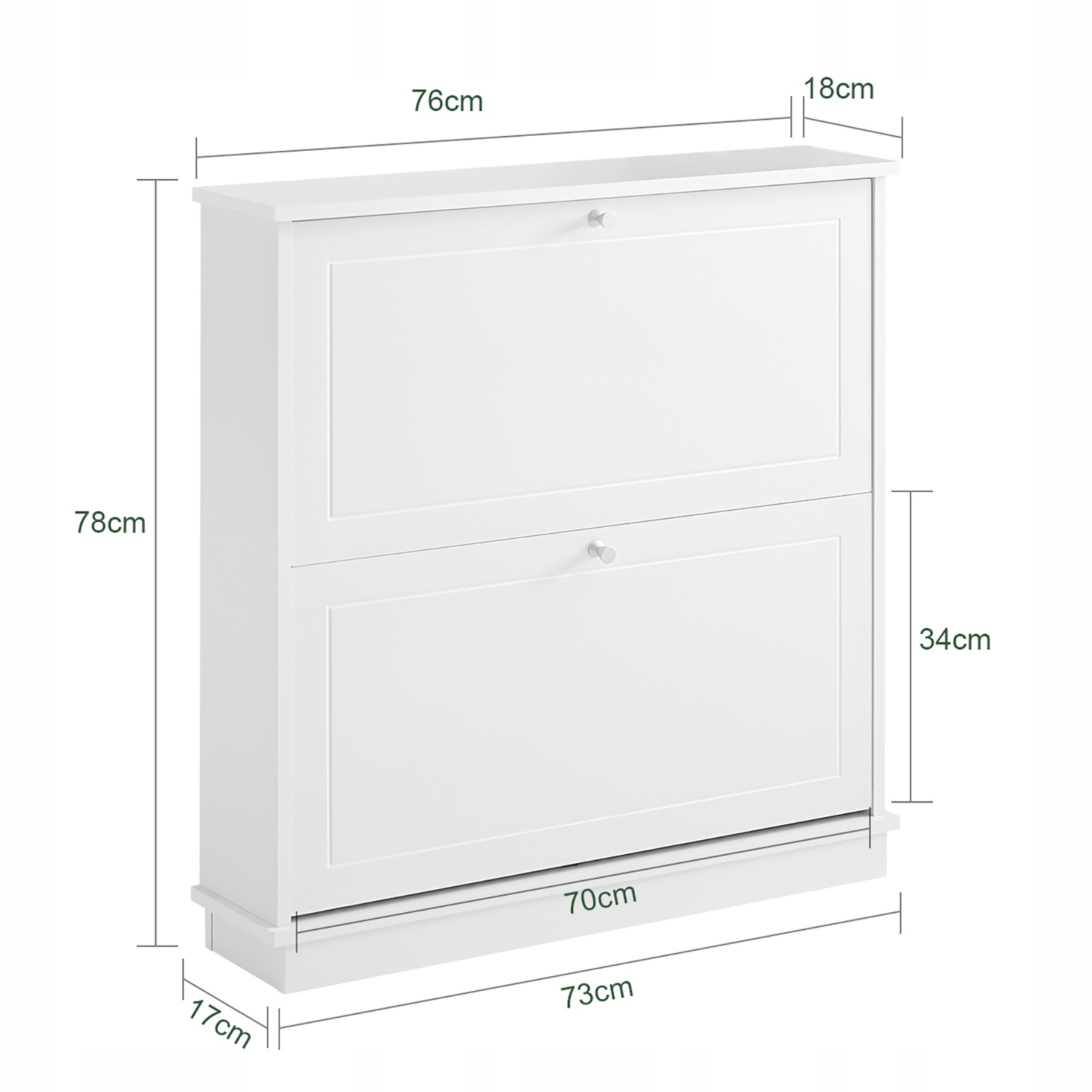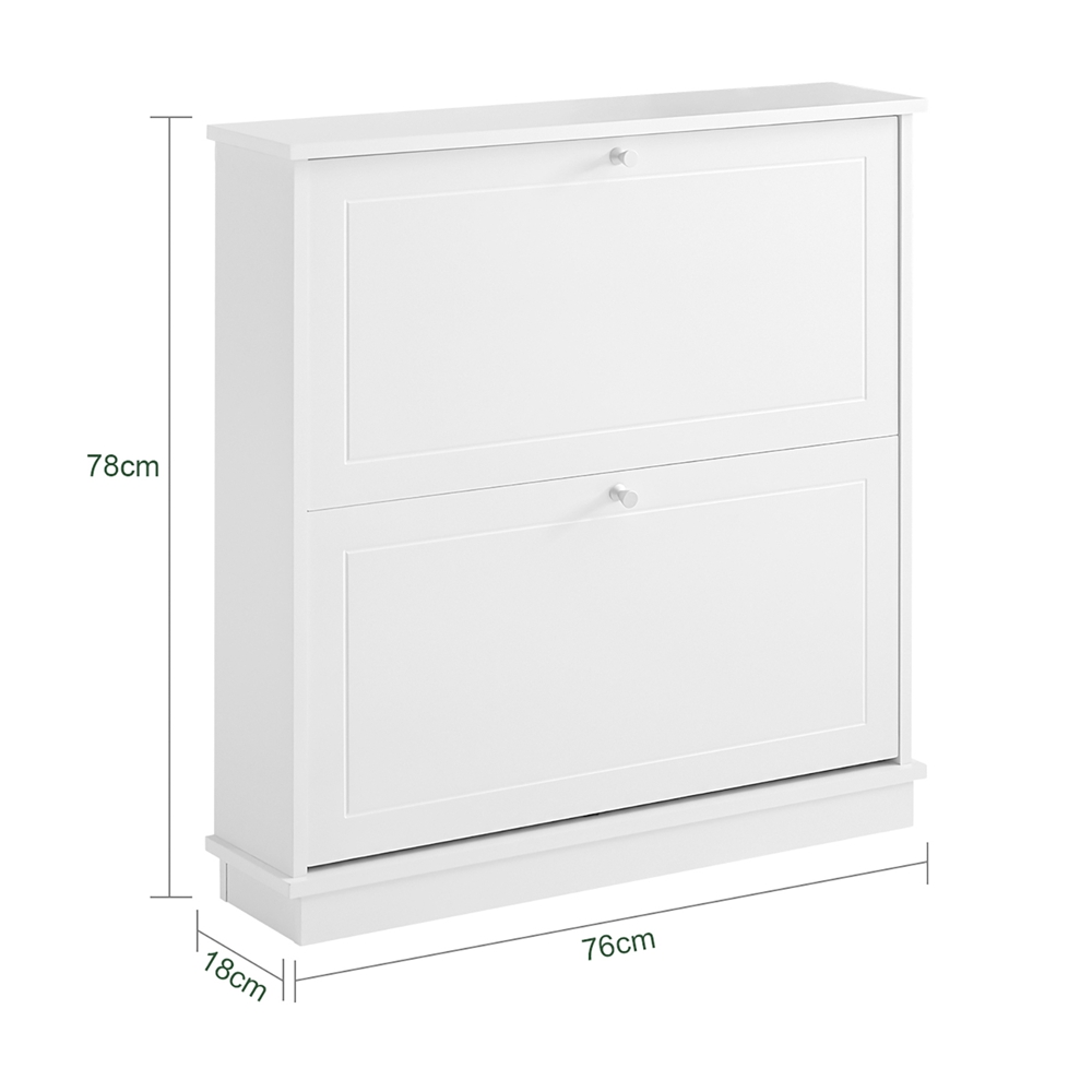 Ympäristöystävällinen valmistus: Kenkäkaappi on valmistettu kestävistä MDF-materiaaleista ja vähäpäisistä akrylaattimaaleista, mikä tekee siitä ekologisen valinnan. Vahva rakenne takaa pitkäikäisen käytön, ja seinäkiinnitysmahdollisuus lisää turvallisuutta perheellisille.