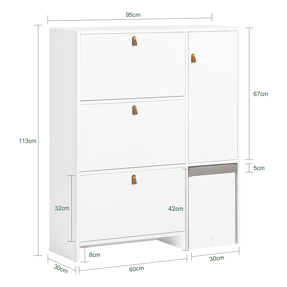 Pitää kengät järjestyksessä ja vapauttaa lattiatilaa. Kenkäkaapissa kengät säilyvät ilmavasti ja pysyvät paremmassa kunnossa. Pehmustettu istuin tekee pukeutumisesta mukavaa.