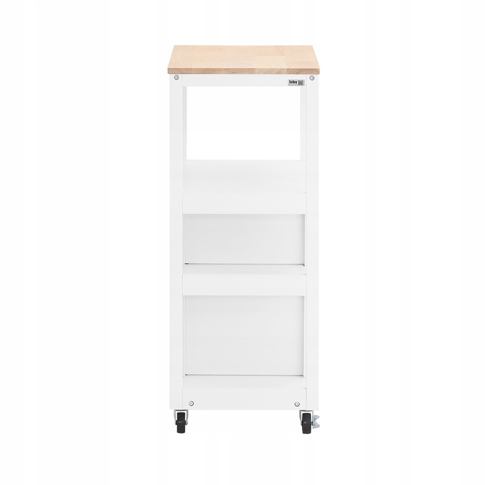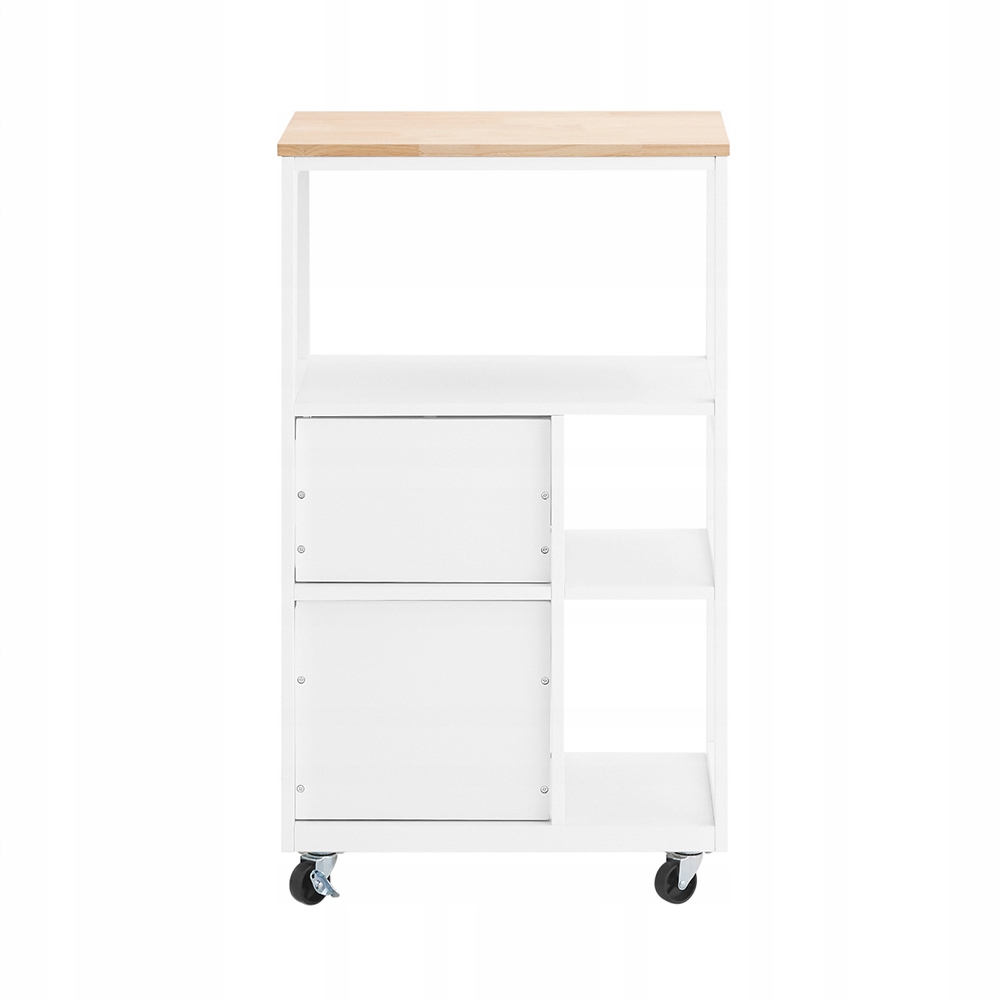 SoBuy:n keittiösaarekkeessa yhdistyvät käytännöllisyys ja tyylikäs pohjoismainen muotoilu. Tämä pyörillä varustettu ratkaisu tarjoaa runsaan säilytystilan kahdella tilavalla laatikolla ja kolmella avohyllyllä, jotka soveltuvat täydellisesti hedelmien, vihannesten ja viinipullojen säilytykseen. E1-luokiteltu MDF-materiaali ja kestävä metallirakenne takaa ympäristöystävällisen ja pitkäikäisen tuotteen.