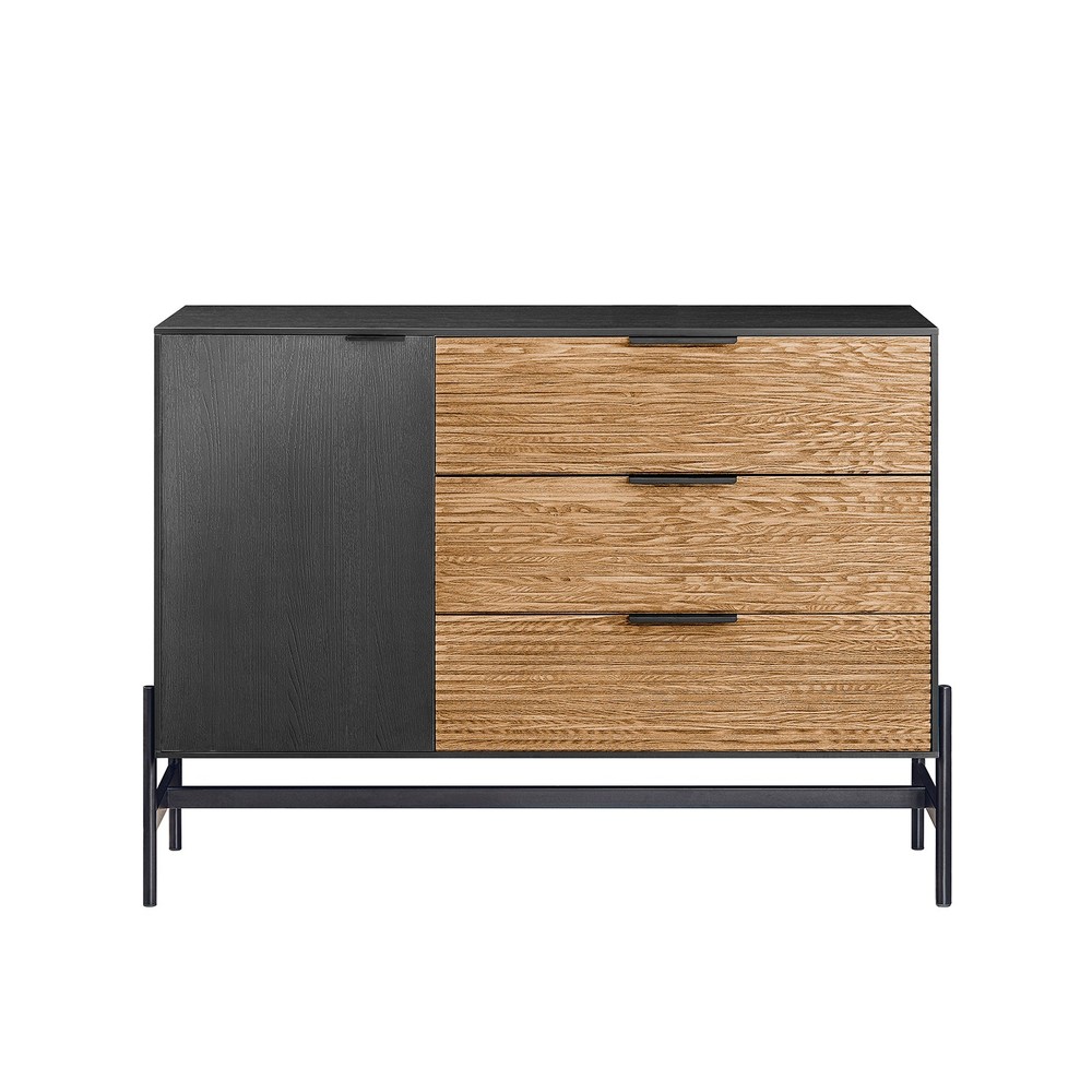 Tämä tyylikäs ja moderni pöytä yhdistää esteettisen muotoilun käytännölliseen toimivuuteen. Siinä on kolme laatikkoa ja suljettu kaksitasoinen hylly, jotka tarjoavat runsaasti säilytystilaa astioille, pöytäliinoille ja ruokailuvälineille.