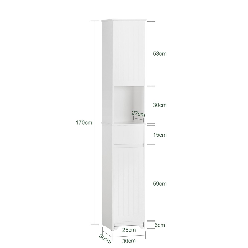 SoBuy Korkea kylpyhuonekaappi bzr109-w, 2-ovinen ja tilava