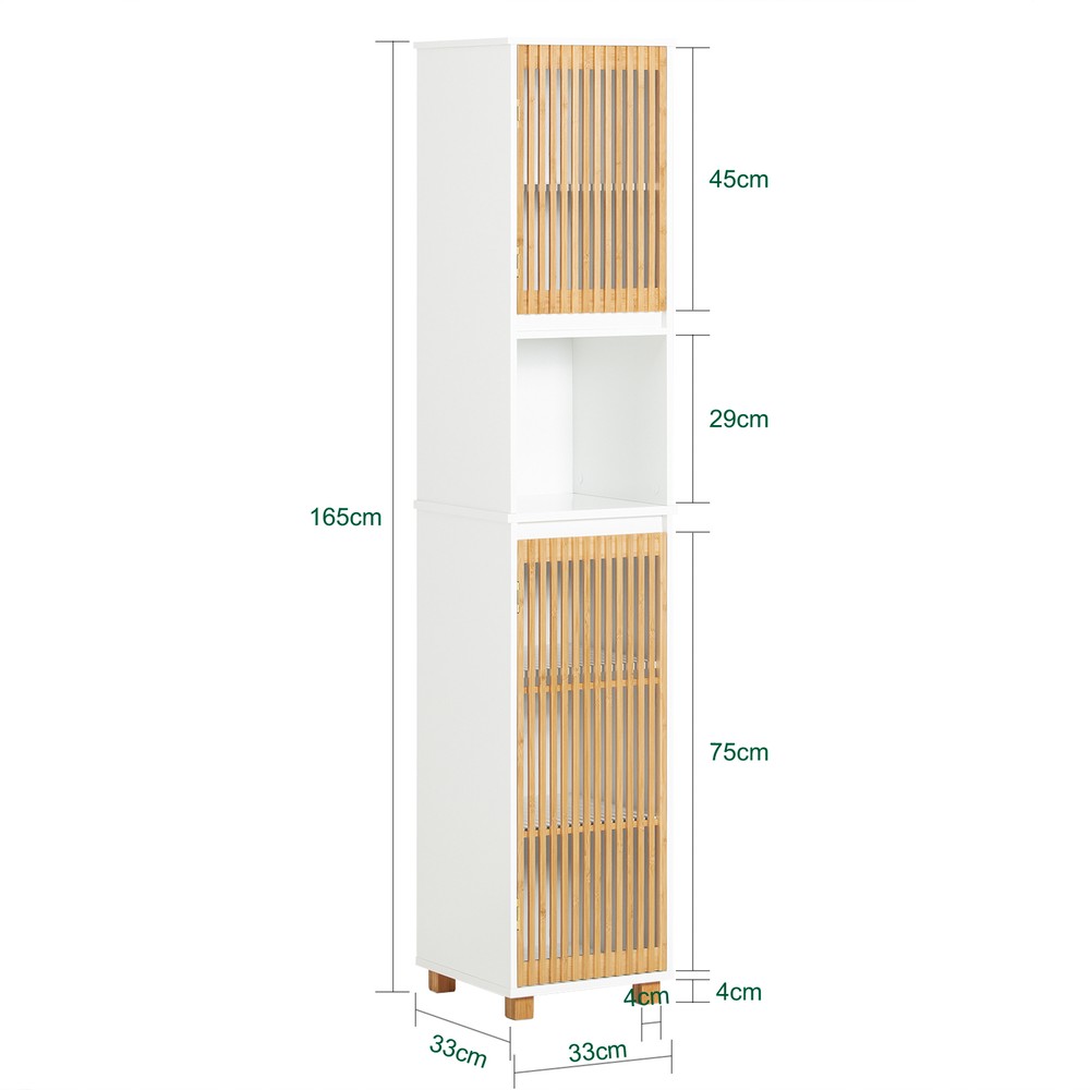 SoBuy:n korkea kylpyhuonekaappi yhdistää pohjoismaisen designin, kestävyyden ja älykkään tilankäytön. Tämä kaunis ja toiminnallinen kaappi on suunniteltu erityisesti pieniin kylpyhuoneisiin tarjoten runsaasti säilytystilaa vaatimatta suurta lattiapinta-alaa.