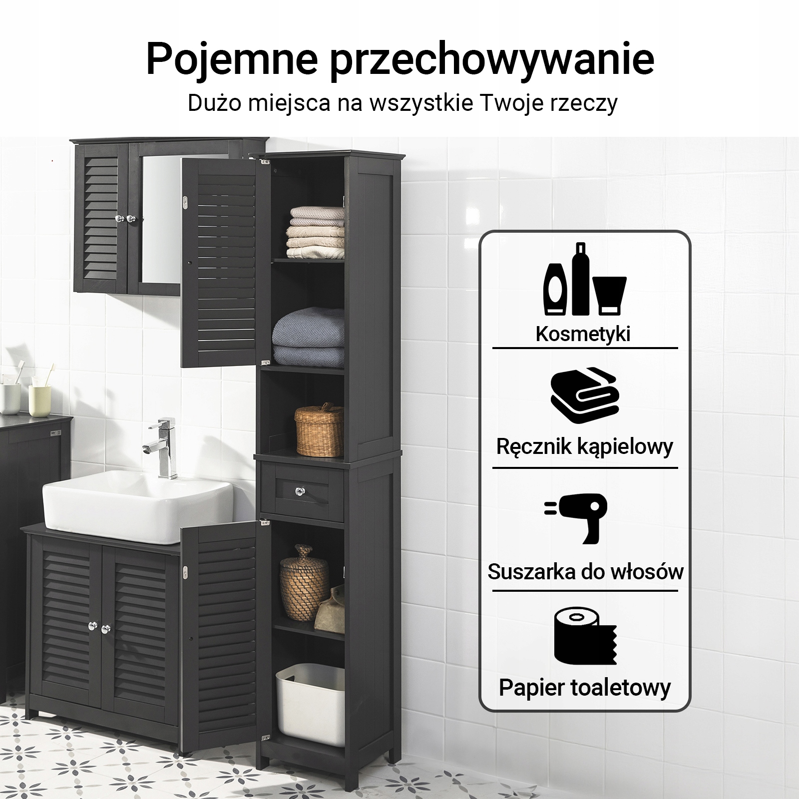Tämä SoBuy-kylpyhuonekaappi yhdistää käytännöllisyyden ja tyylikkään pohjoismaisen designin. Sen älykäs rakenne tarjoaa runsaasti säilytystilaa shampoopulloille, saippuoille ja muille hygieniatarvikkeille, mutta vie vain 29 cm lattiatilaa. Ilmankierto raoitetuista ovista estää homeen muodostumisen ja pitää sisällön tuoreena.
