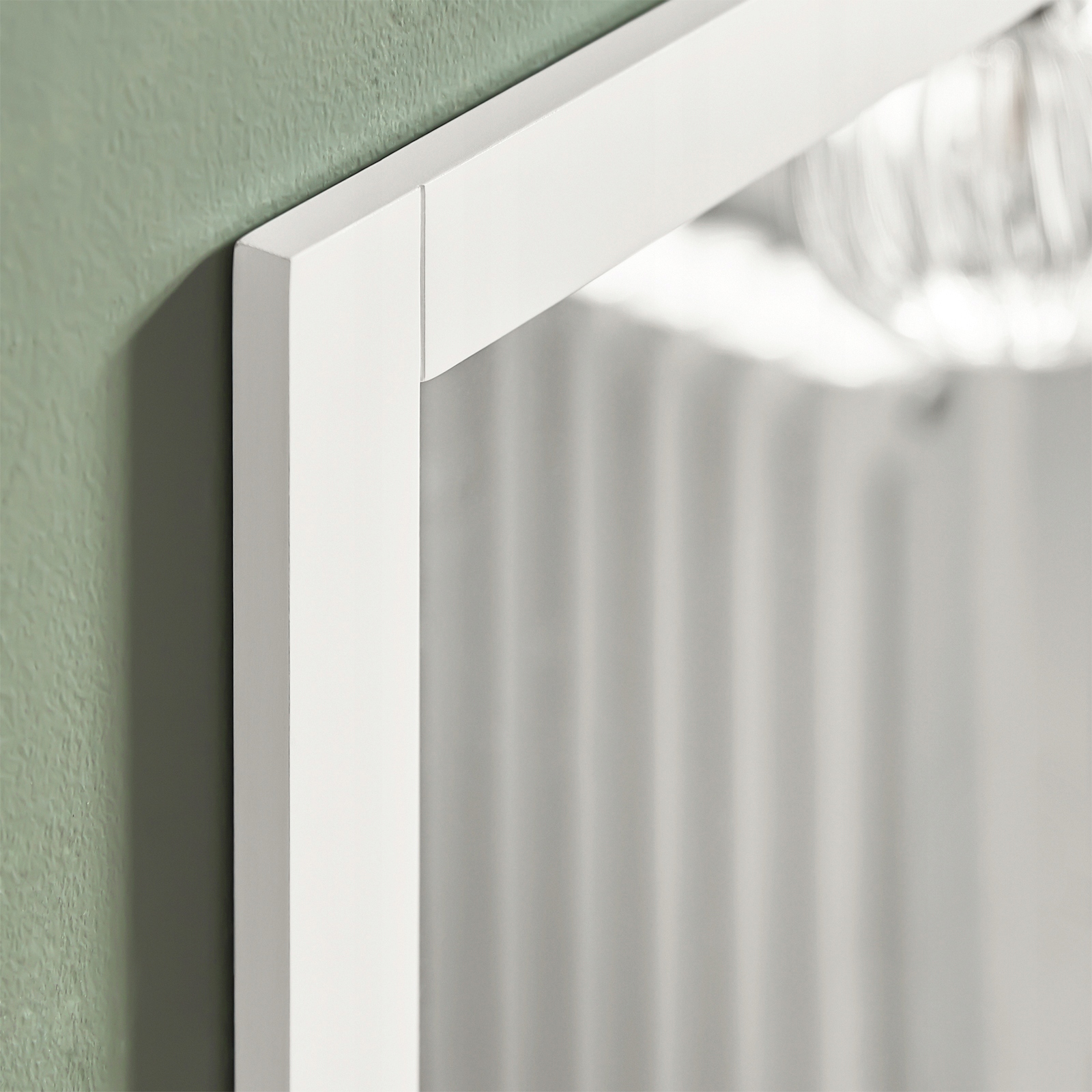 - **Puhdas design:** Valkoinen MDF-kehys ja akryylilakka antavat peilille modernin ja tyylikkään ilmeen.