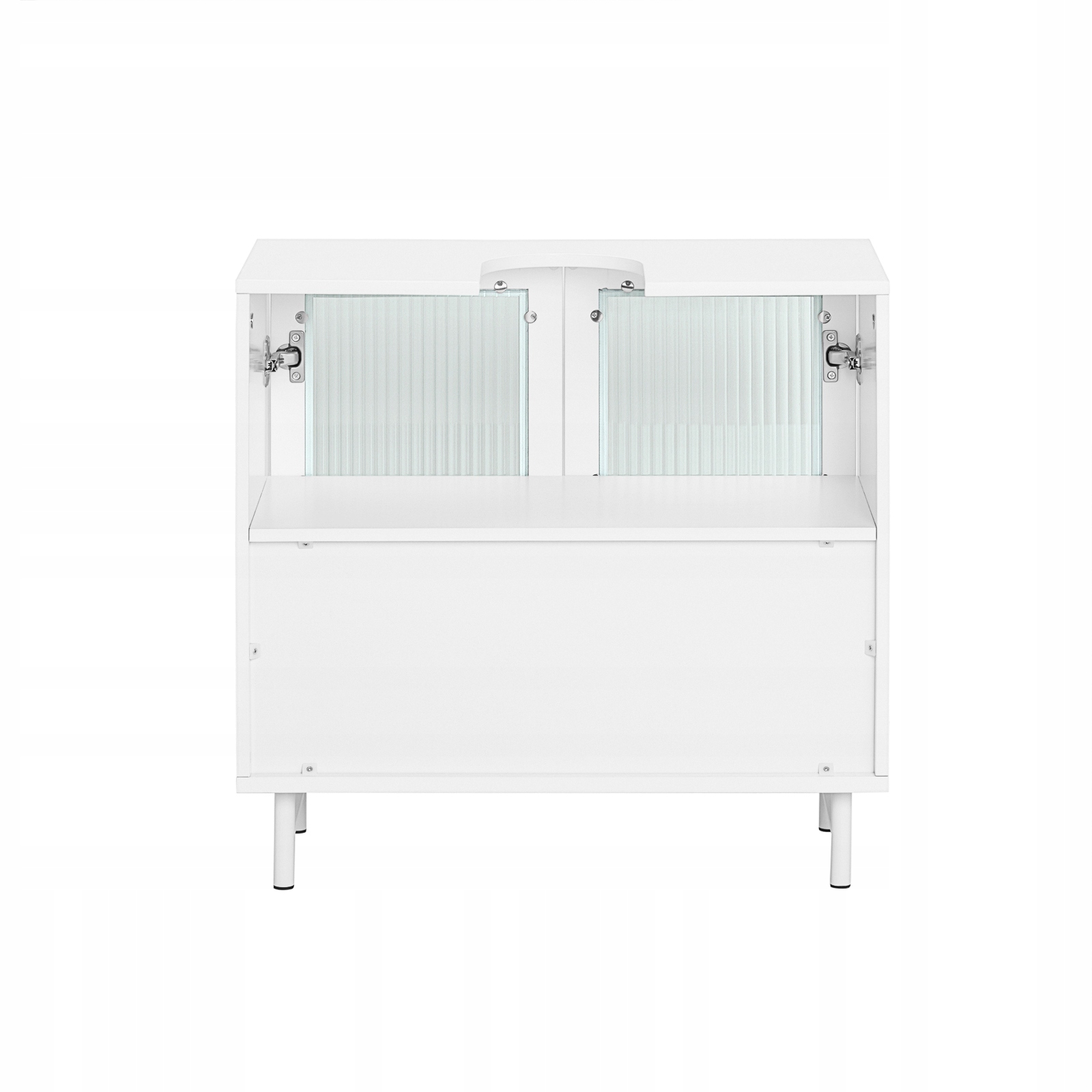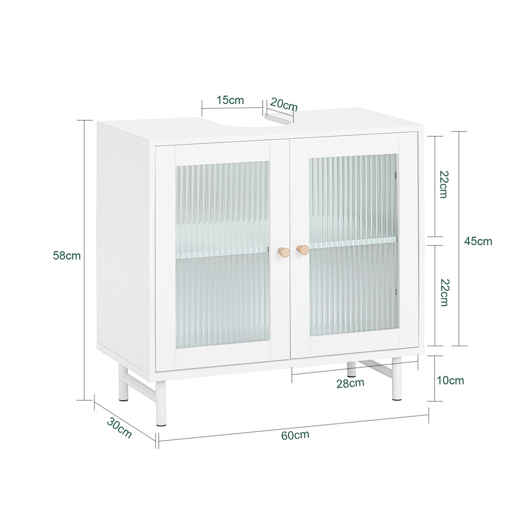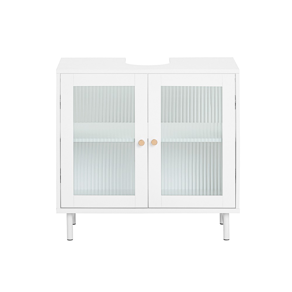 Tämä käytännöllinen pohjakaappi tarjoaa runsaasti säilytystilaa kylpyhuoneessasi. Lasiovet pitävät tavarasi pölyttöminä mutta näkyvissä. Säädettävät hyllyt mahdollistavat mukavan mukauttamisen omille tarpeille.