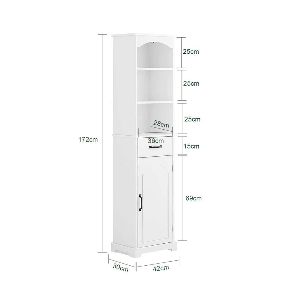 SoBuy Kylpyhuonekaappi 42x30x173 cm puinen valkoinen säädettävillä hyllyillä BZR206-W