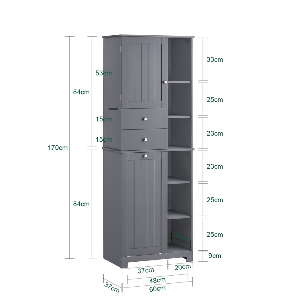 SoBuy Kylpyhuonekaappi 6-hylkyä 2-laatikkoa puukuitulevystä BZR104-DG