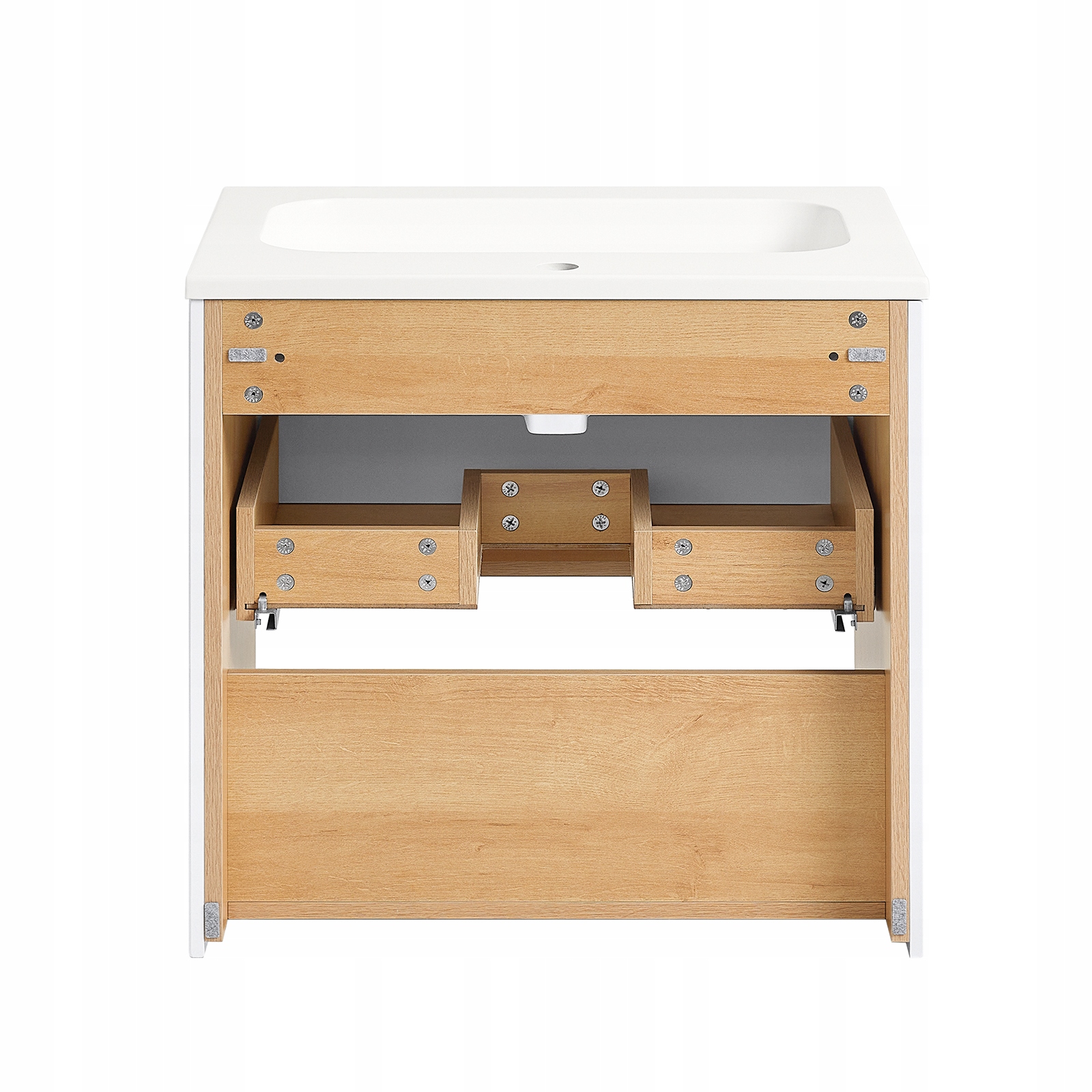 Kaapissa on tilava laatikko monipuolista säilytystä varten sekä avoimet hyllyt kylpyhuonetarvikkeille. Laadukkaat materiaalit takaavat kestävyyden ja pitkän käyttöiän. Pinnat on helppo puhdistaa kostealla liinalla.