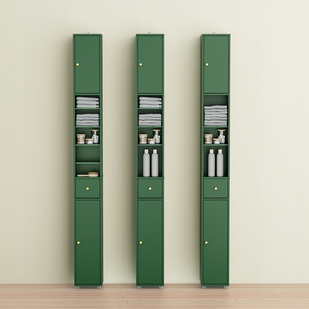 Vain 20 cm leveä kaappi, joka sopii erinomaisesti pieniin tiloihin kuten kylpyhuoneisiin, eteisiin tai makuuhuoneisiin. Hyödyntää älykkäästi pystytilaa.