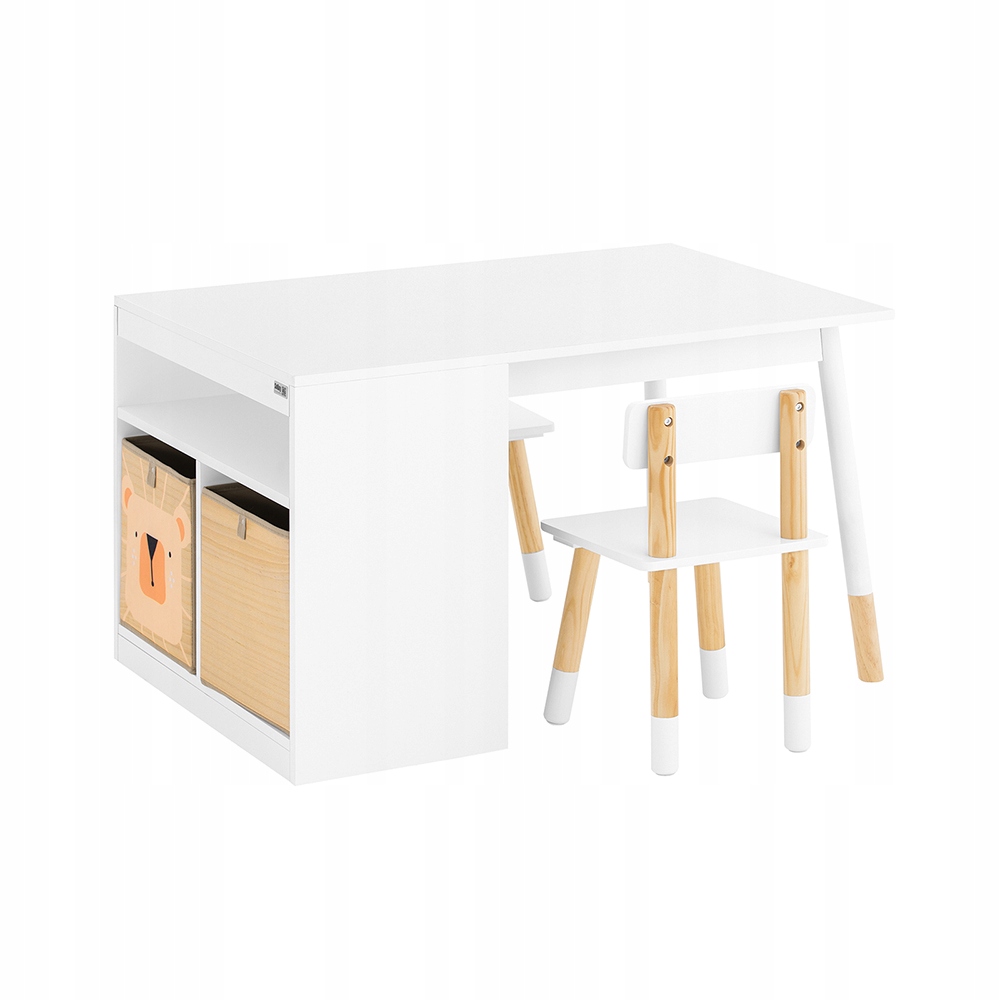Pöytä soveltuu opiskeluun, syömiseen ja luovaan toimintaan. Pöytälevyn alla on 2 laatikkoa (27×27×27 cm) ja 2 avointa lokeroa. Tuolit voidaan säilyttää pöydän alla.