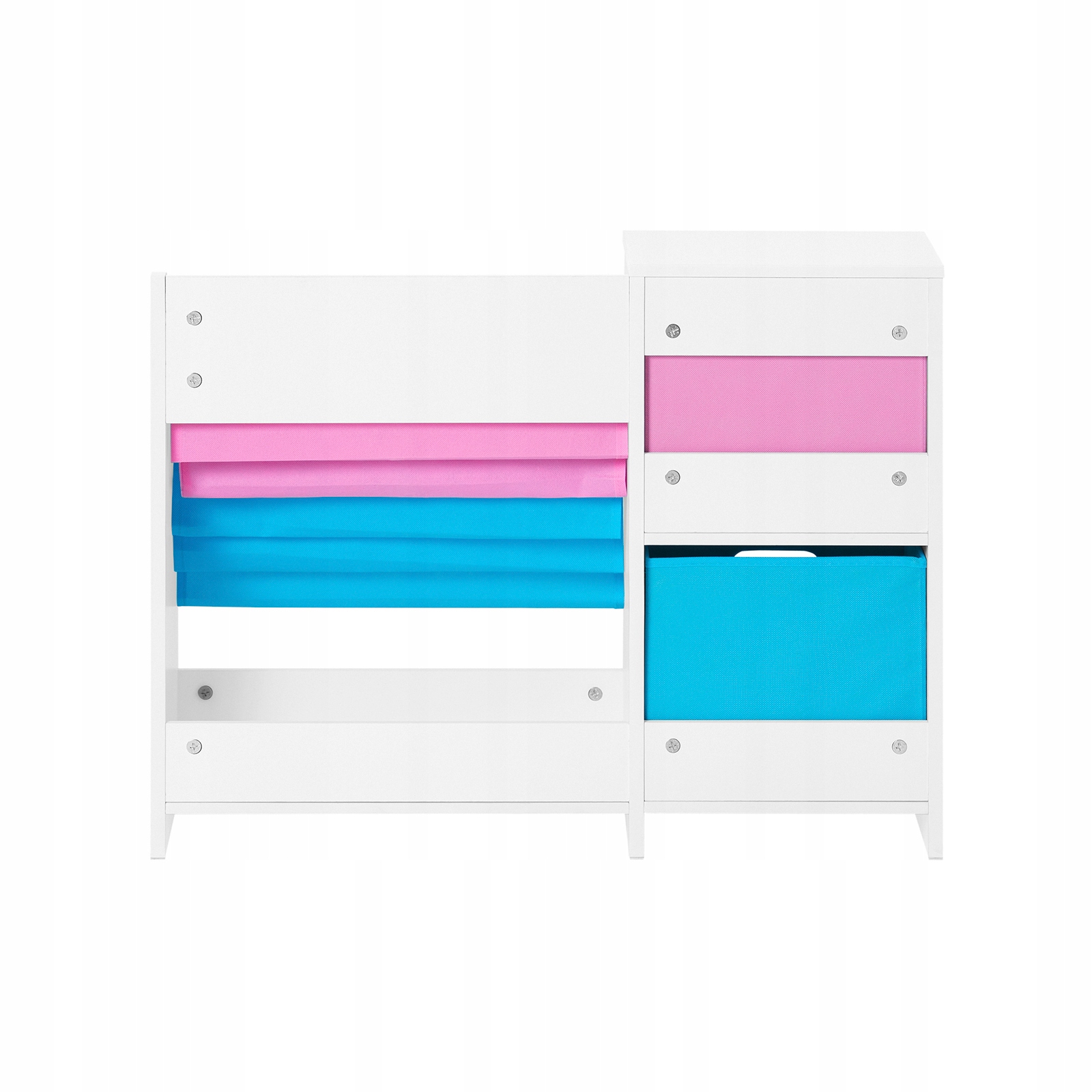 Tämä 61 cm korkea hylly mahdollistaa helpon kirjojen ja lelujen järjestelyn, jopa pienimmille käyttäjille. 5 avointa hyllykerrosta pitävät suosikkikirjat ja lehdet käden ulottuvilla, kun taas 2 irrotettavaa kuitukangaslaatikkoa tarjoavat tilan pienille leluille ja rakennuspalikoille. Alalaatikko on erityisen tilava, sopien täydellisesti nukeille ja Legolle.