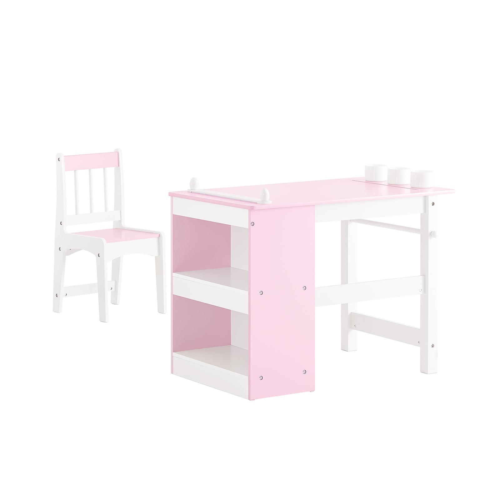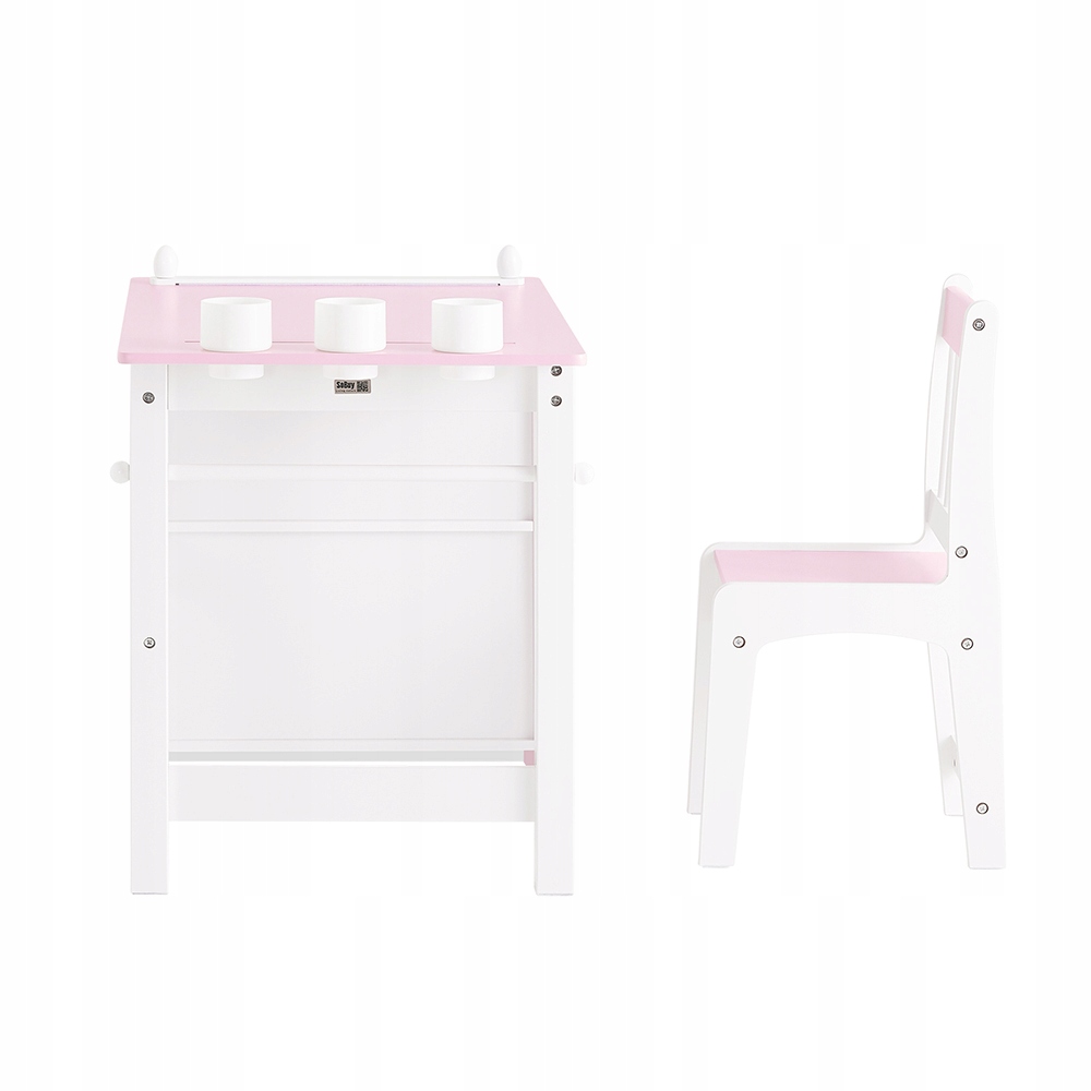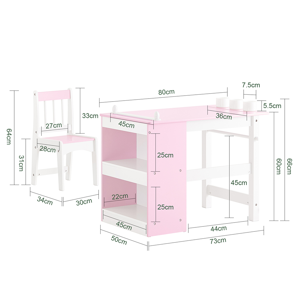 SoBuy:n lasten työpöytä ja tuoli tarjoavat täydellisen ratkaisun luovaan leikkiin! Skandinaaviseen designiin perustuva setti yhdistää tyylikkäät yksinkertaiset linjat ja käytännöllisyyden. Pöydän ja tuolin kaikki kulmat on pyöristetty turvallisuuden vuoksi, mikä suojaa lapsen herkkää ihoa ja vähentää vahinkoriskejä.
