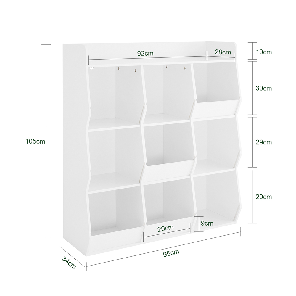 SoBuy Lastenkirjahylly 9-osastoa 95x34x105 cm valkoinen KMB120-W