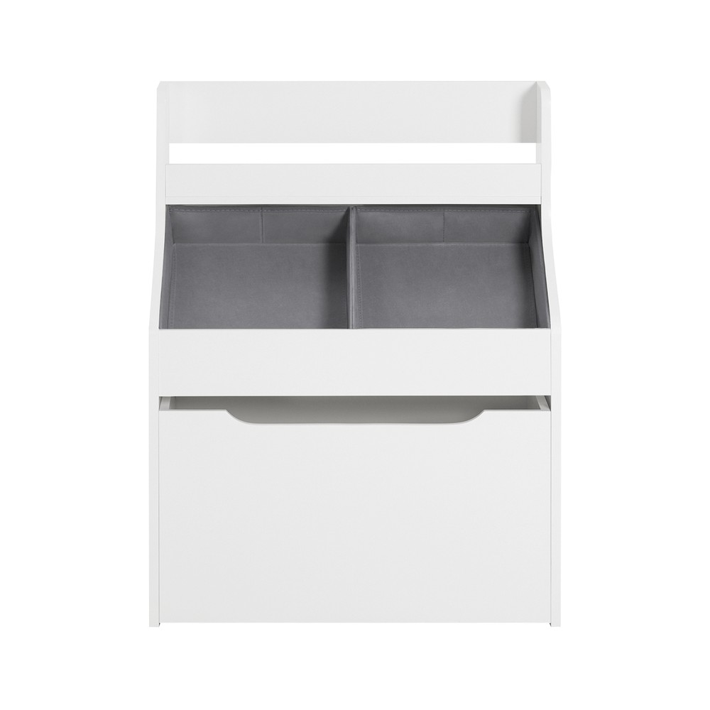 Hyllyssä on kaksi avointa hyllyä ja kaksi yläosan kangaslaatikkoa, jotka tarjoavat runsaasti tilaa leluille, kirjoille ja muille tavaroille. Alimmat laatikot on varustettu pyörillä, joten lapset voivat siirtää niitä helposti.