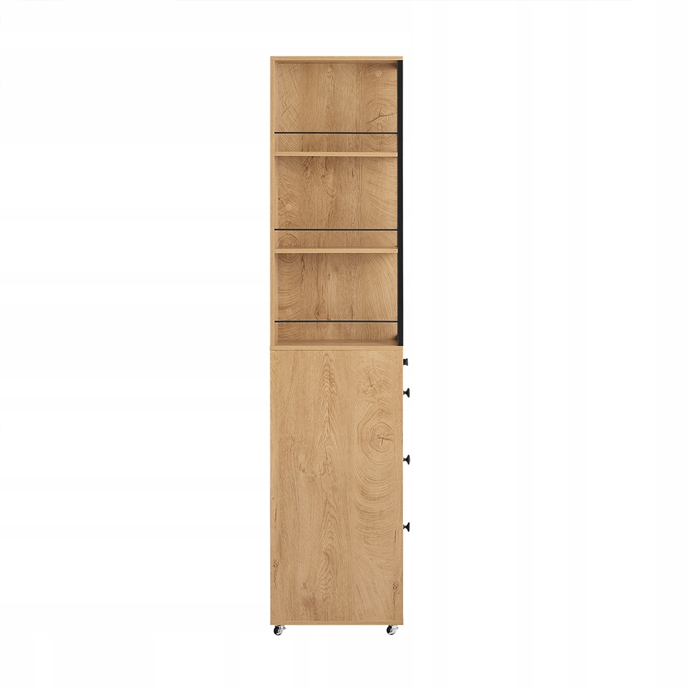 Kolme avointa hyllyä ja kolme mustakahvaista laatikkoa tarjoavat täydellisen järjestelyratkaisun. Integroidut pyörät (kaksi jarrullista) mahdollistavat helpon liikuttelun.