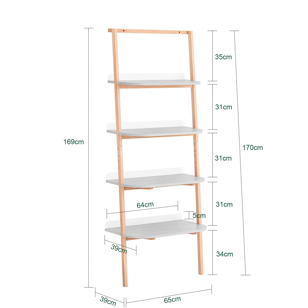 Hylly on valmistettu kestävästä E1-luokan MDF-levystä ja pyökkipuusta, mikä takaa pitkäikäisyyden ja vakauden. Jokainen 169 cm korkea hyllykkö on varustettu selkänojalla, joka estää esineiden putoamisen tehokkaasti. Enintään 61 kg:n kantavuus tekee siitä ihanteellisen vaihtoehdon kirjoille, kasveille tai koriste-esineille.