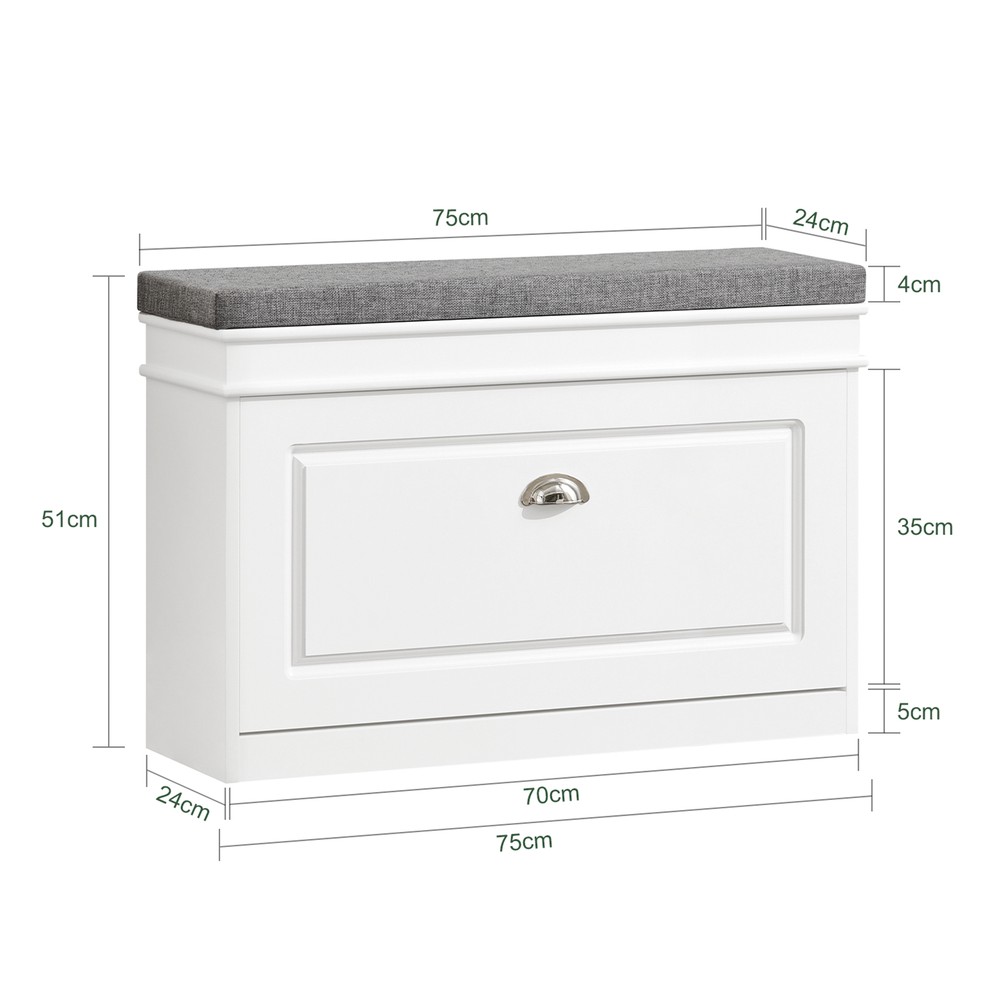 SoBuy-kenkäpenkki yhdistää tyylikkään pohjoismaisen designin ja käytännöllisyyden. Tämä monikäyttöinen huonekalu toimii sekä kengän säilytykseen että mukavana istuimena eteisessä, olohuoneessa tai makuuhuoneessa. Sen kompakti syvyys (vain 24 cm) tekee siitä täydellisen ratkaisun kapeisiin käytäviin.