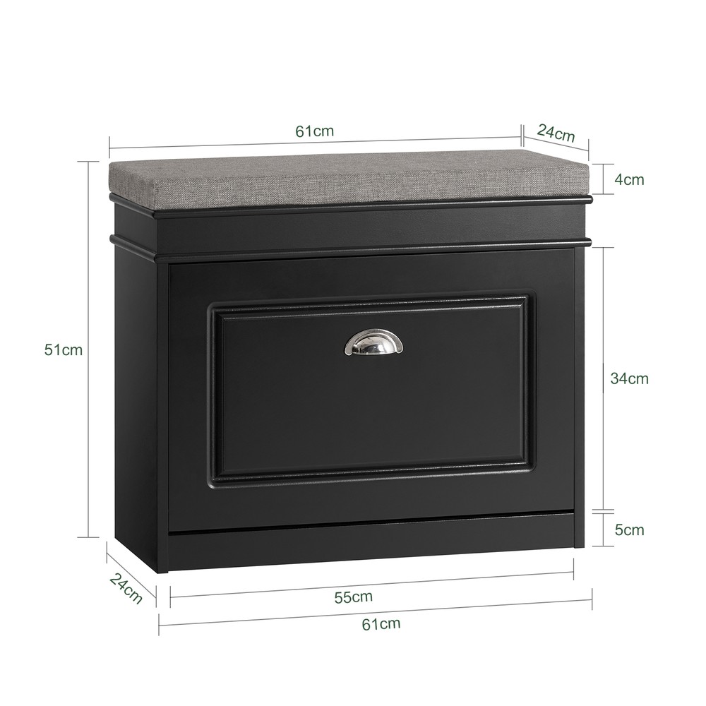 SoBuy-kenkäpenkki yhdistää tyylikkään pohjoismaisen designin ja kestävän ekologisuuden. Tämä monikäyttöinen huonekalu toimii sekä käytännöllisenä kenkäkaappina että mukavana istuimena eteisessä, parvekkeella tai makuuhuoneessa. Pehmustettu istuin takaa miellyttävän istumiskokemuksen, kun taas tilava säilytystila pitää kengät siististi järjestyksessä ja vapauttaa arvokasta lattiatilaa.