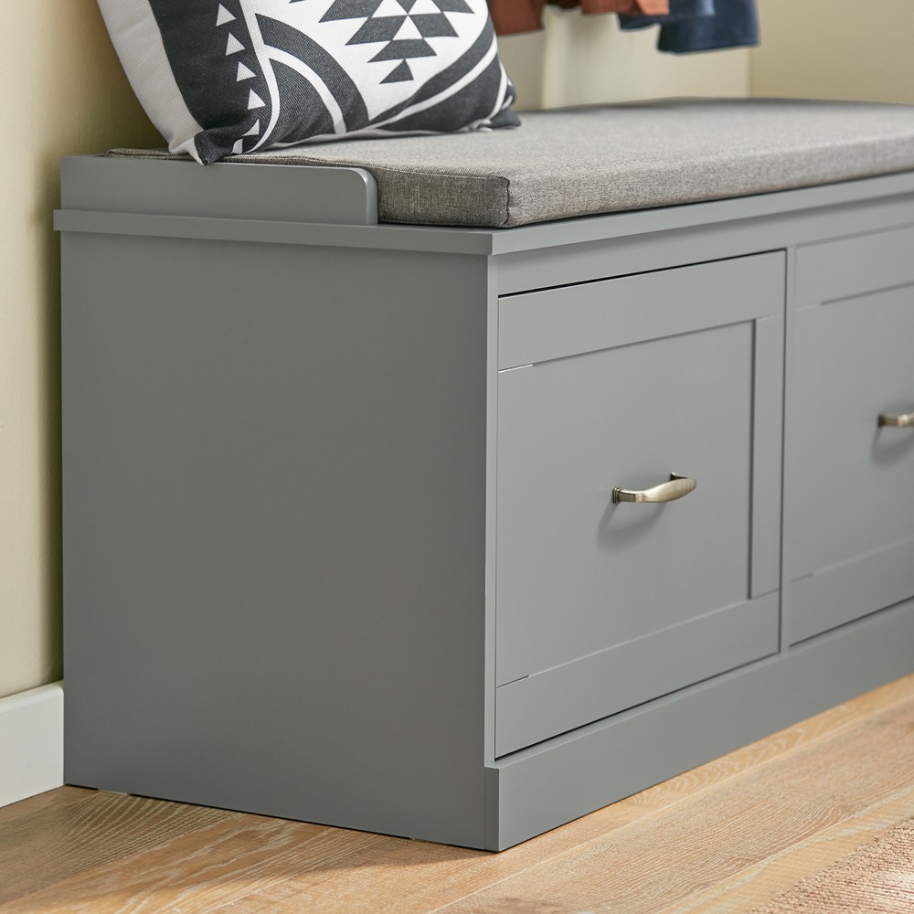 Laadukkaasta MDF-materiaalista valmistettu penkki on erittäin kestävä ja kestää jopa 150 kg:n kuorman. Pehmustettu istuinosa takaa mukavan istumiskokemuksen. Kenkäpenkin 98 cm levyinen laatikkoratkaisu pitää kengät siistissä järjestyksessä ja vapauttaa arvokasta lattiatilaa.
