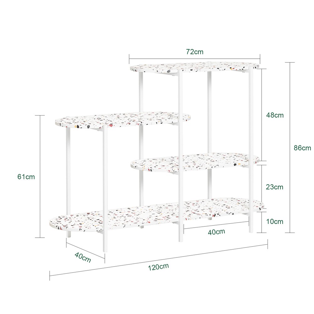 Tätä jalustaa voi käyttää monipuolisesti sekä sisätiloissa että ulkona. Sopii erinomaisesti kukkahyllyksi puutarhassa tai parvekkeella, kirjahyllyksi olohuoneessa tai esittelytelineeksi kahviloissa ja baareissa.
