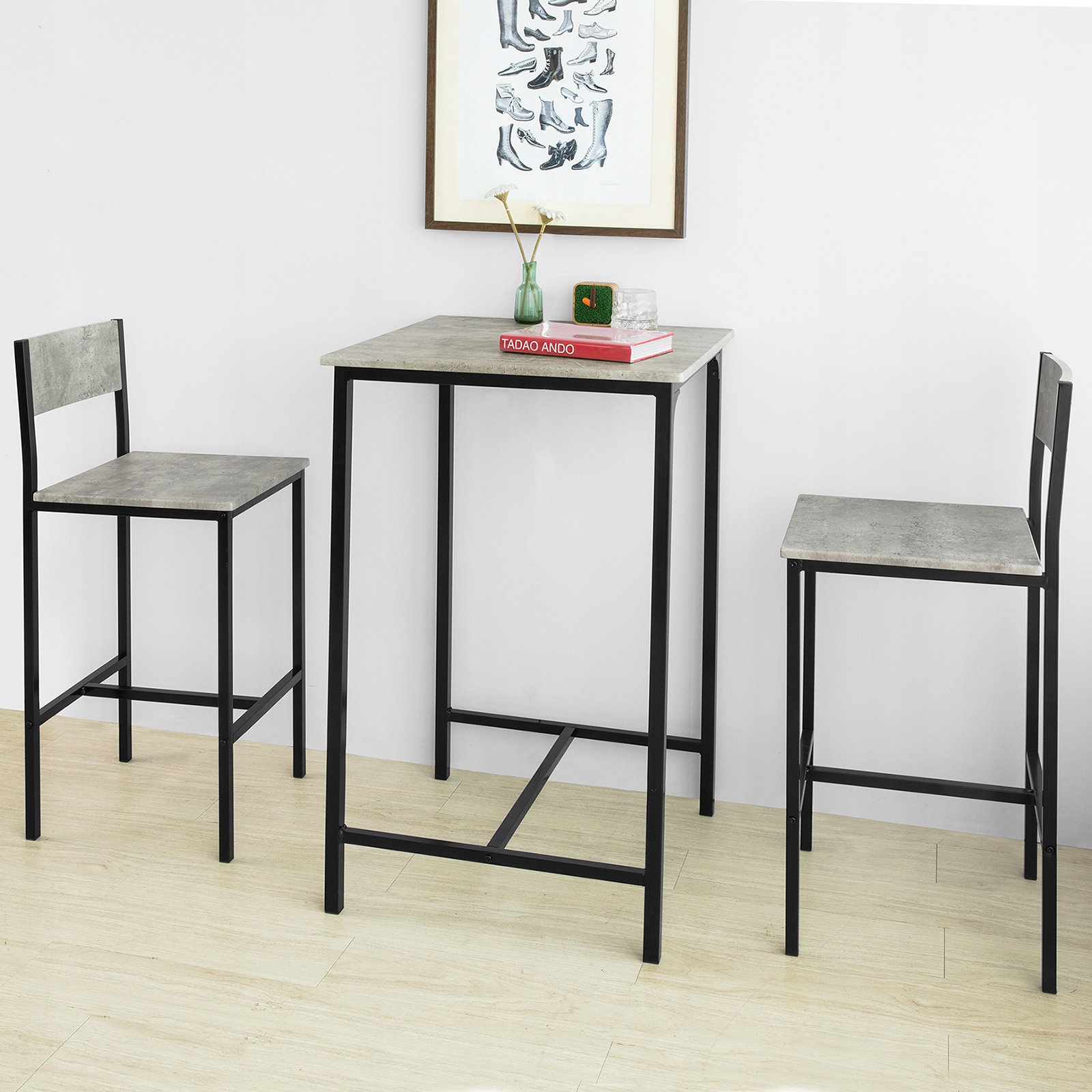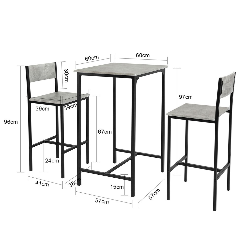 SoBuy Ruokailuryhmä 2 hengelle puukuitulevystä ja metalli harmaa OGT27-HG