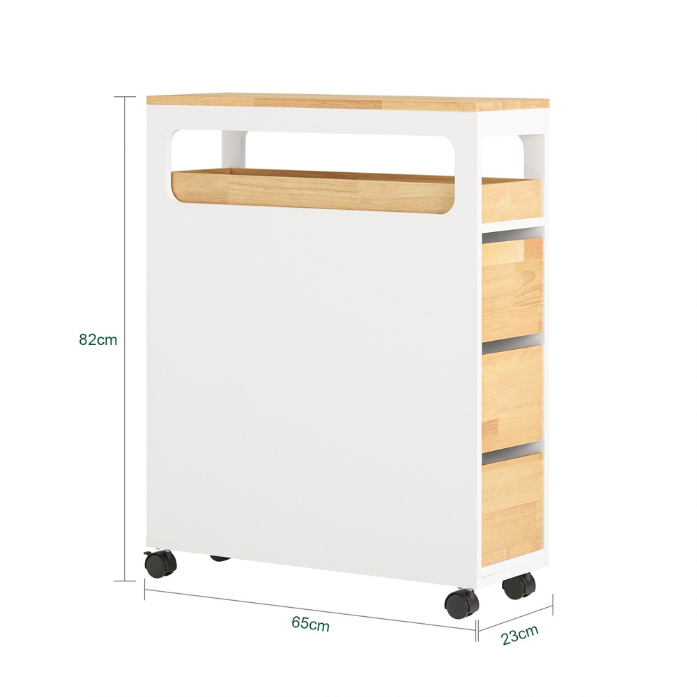 SoBuy:n kompakti ja tyylikäs säilytysratkaisu on täydellinen lisä keittiöösi, kylpyhuoneeseen tai mihin tahansa tilaan, jossa tarvitset kätevää säilytystilaa. Tämä monikäyttöinen kaappi asennetaan helposti kahden huonekalun väliin hyödyntämällä käyttämätöntä tilaa.