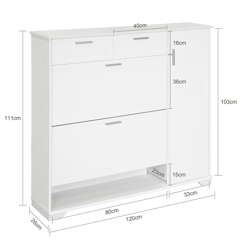 Valkoinen akrylaattimaalipinta lisää valoisaa eleganssia sisustukseesi ja sopii harmonisesti moderniin pohjoismaiseen designiin. SoBuy-kenkäkaappi on sekä käytännöllinen että tyylikäs ratkaisu kengän säilytykseen.