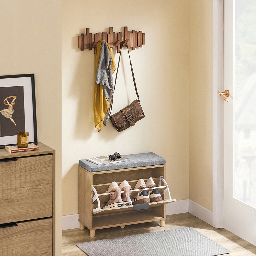 <li><span><strong>[Monikäyttöinen kenkäpenkki älykkäällä säilytyksellä]</strong> SoBuy:n innovatiivinen design sisältää taittuvan istuimen ja piilotetun säilytyslokeron, johon mahtuu jopa 4 kenkäparia. Yhdistää käytännöllisyyden ja tyylikkään puisen estetiikan.</span></li>