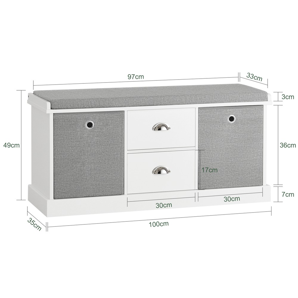 SoBuy Säilytyspenkki tyynyllä puukuitulevystä harmaa FSR66-HG