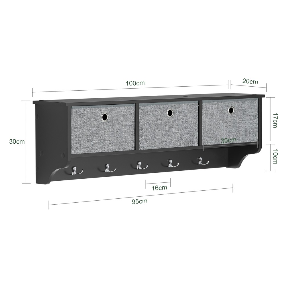 SoBuy Seinäteline FRG282-SCH 5 koukkua & 3 koria, 15kg, musta