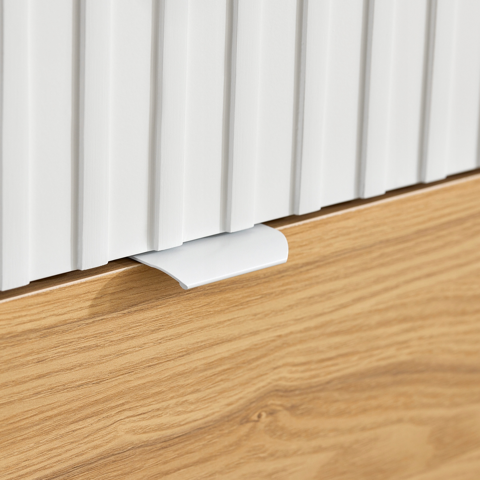 Avohyllyllä voit esitellä taideteoksia, asusteita tai kasveja. Suljetussa osiossa on ovi ja kolme vetolaatikkoa, joissa on runsaasti tilaa eri tavaroille.