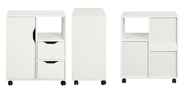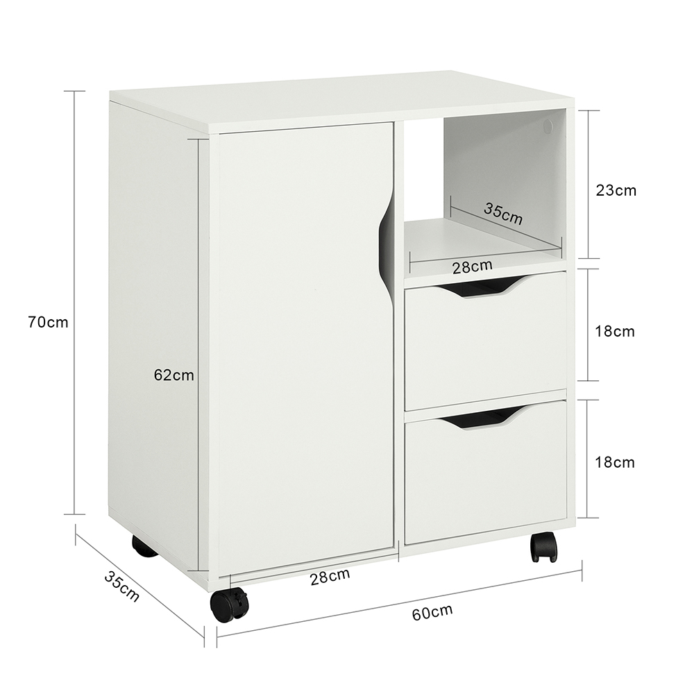 Tämä SoBuy-lipasto yhdistää tyylikkään pohjoismaisen designin ja käytännöllisyyden. Sen avulla voit luoda rauhallisen ja viihtyisän tunnelman makuuhuoneeseen tai eteiseen. Lipastossa on tilava avoin hylly, 2 vetolaatikkoa sekä 1 ovellinen kaappi, joten se tarjoaa runsaasti säilytystilaa. 360° pyörivien universaalipyörien ansiosta huonekalu on helppo siirtää kevyesti paikasta toiseen.