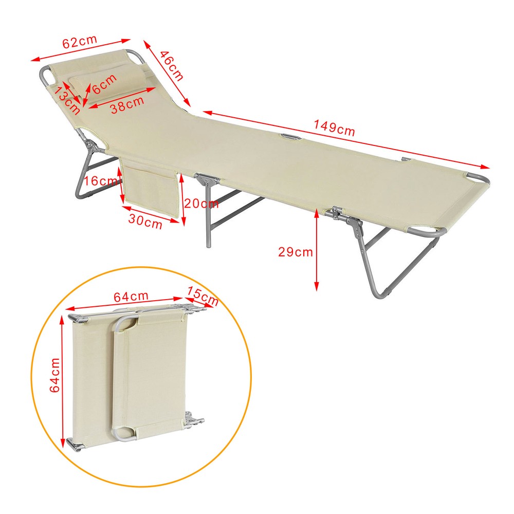 Pehmustettu tyyny tulee myös mukana ja se tarjoaa mukavaa tukea niskallesi. Selkänoja on säädettävissä, joten se antaa sinun mennä makuulle mahdollisimman mukavasti.