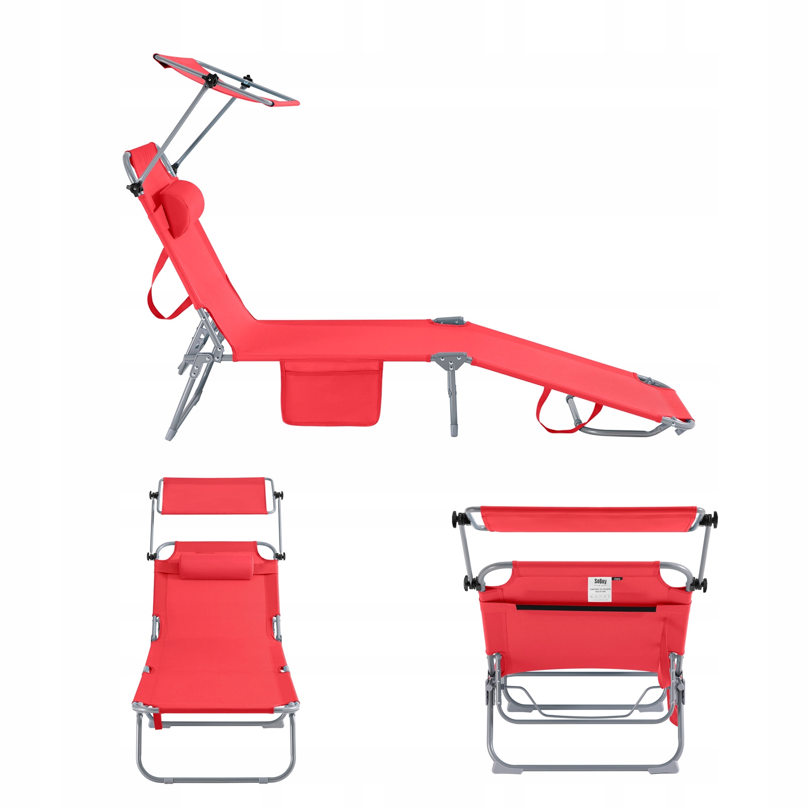Tämä laadukas aurinkotuoli on varustettu säädettävällä katoksella, joten voit nauttia auringonpalvonnasta ilman huolta häikäisystä.
