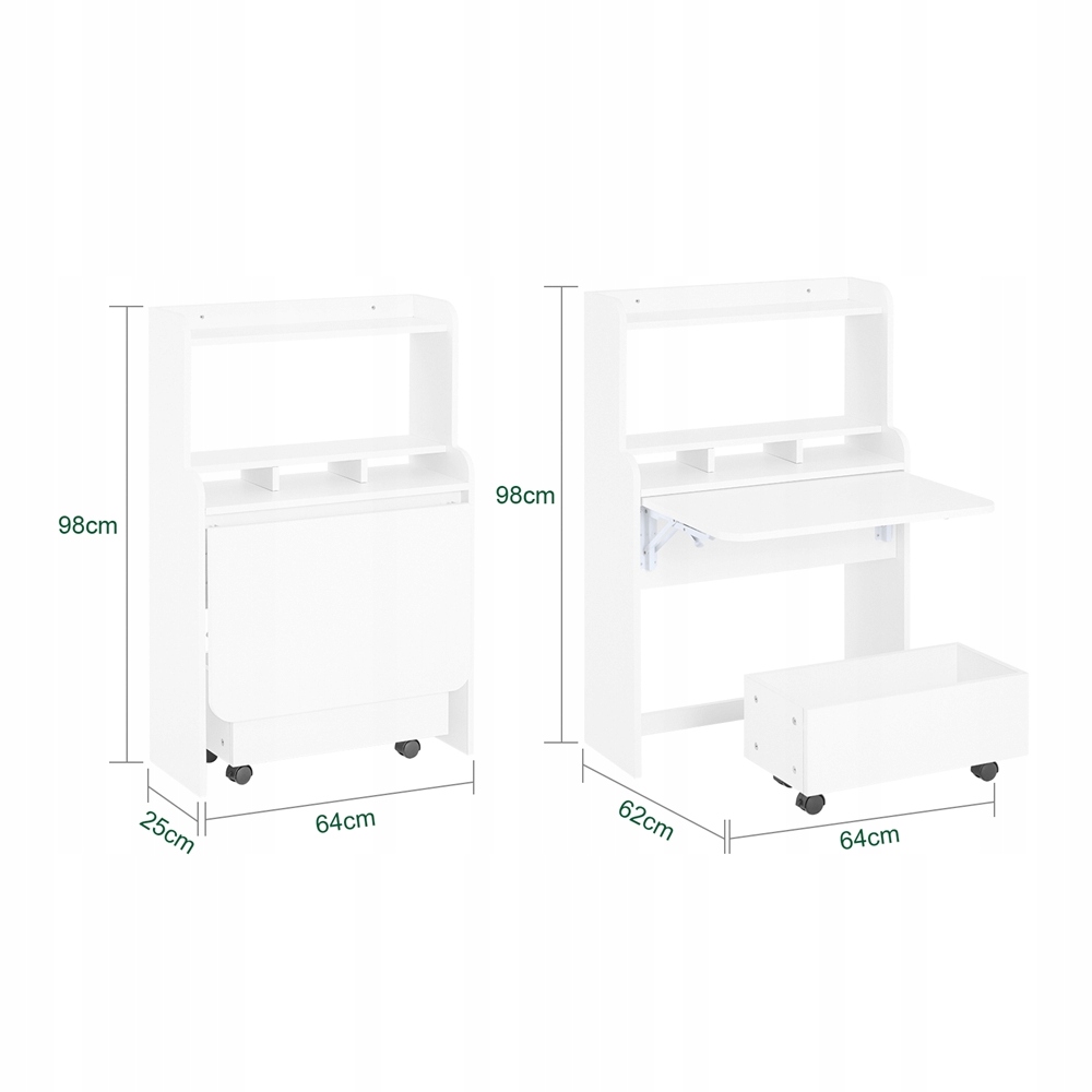 Pöydän älykäs taittuva rakenne mahdollistaa käyttötilan optimoinnin - voit helposti taitella sen pois, kun et käytä. Pöydän päällä olevat 3 kätevää lokeroa pitävät työvälineet ja paperit järjestyksessä. Alapuolella oleva pyörillä varustettu säilytyslaatikko tarjoaa lisätilaa kirjoille tai asiakirjoille, ja sen voi siirtää vaivattomasti tarvittaessa.