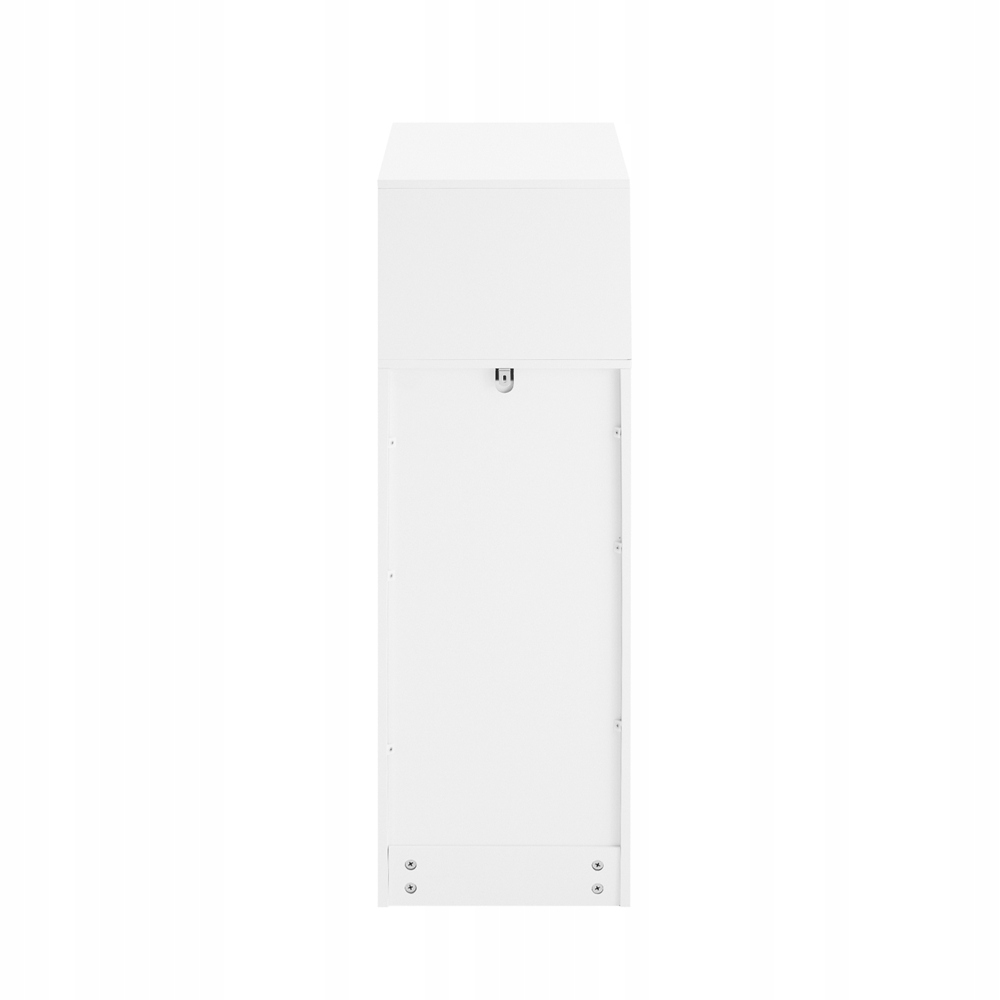 Kompakti ja tilaa säästävä design: Pystysuuntainen rakenne integroituu helposti työpöydän viereen tai huoneen nurkkaan. Valkoinen väri ja minimalistinen linjaus sopivat harmonisesti pohjoismaiseen sisustukseen.