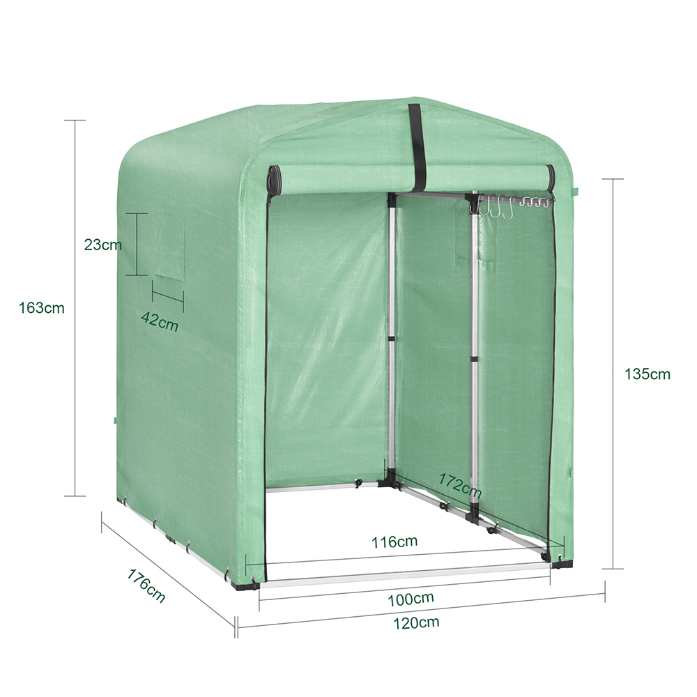 - [SoBuy-tuotetiedot]: Kestävä 8,4 kg PE-vedenkestävä materiaali yhdistettynä kevyeseen alumiinirunkoon. Mitat: 120x176x163cm (1 paketti, 96x16x34cm). Pohjoismaisen ekologisen suunnittelun mukainen ratkaisu.