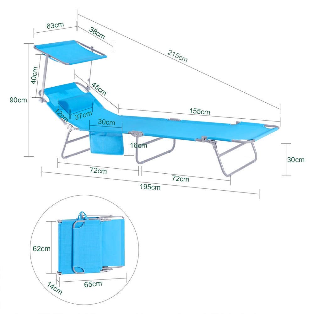 Aurinkoiset päivät tulossa! Hyödynnä tilaisuus rentoutua tässä aurinkotuolissa, jossa on 30 cm korkea istuin ja hengittävä kangas.