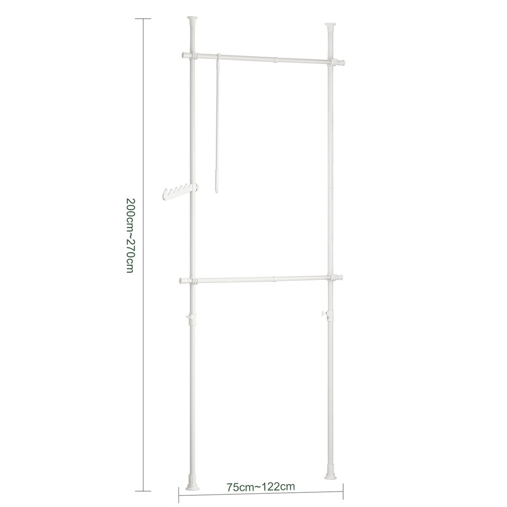 SoBuy-teline on älykäs ratkaisu pienissä tiloissa, yhdistäen käytännöllisyyden tyylikkääseen pohjoismaiseen muotoiluun. Tämä säädettävä lattiasta kattoun ulottuva järjestelmä tarjoaa täydellisen säilytysratkaisun vaatteille ja kengille ilman turhaa tilanviehää. Sen joustavuus tekee siitä täydellisen sekä makuuhuoneeseen että vaatehuoneeseen.