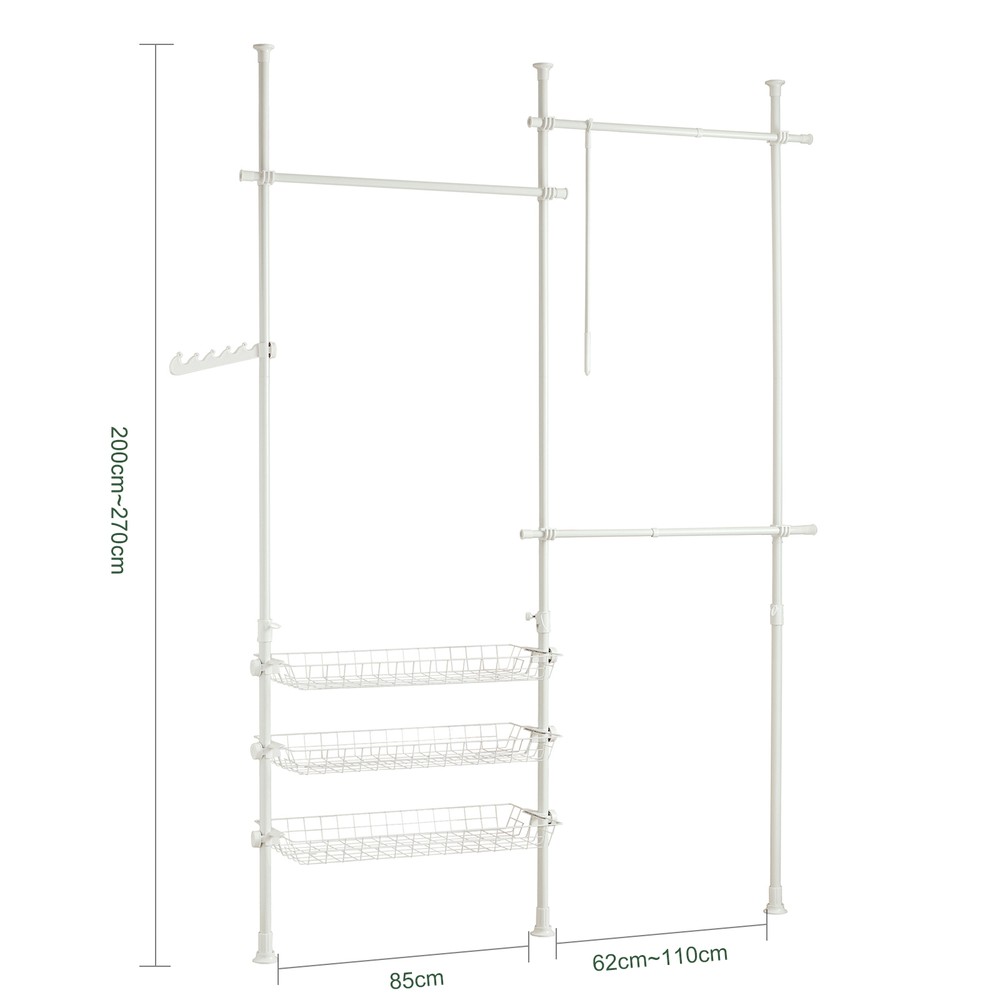 SoBuy-teleskooppivarastointijärjestelmä tarjoaa täydellisen ratkaisun vaatteiden ja kenkien säilytykseen. Sen älykäs design ja pohjoismaiset design-periaatteet tekevät siitä sekä käytännöllisen että tyylikkään lisän mihin tahansa tilaan. Kokoa järjestelmä nopeasti ja helposti ilman työkaluja – ei porausta tai ruuveja tarvita!