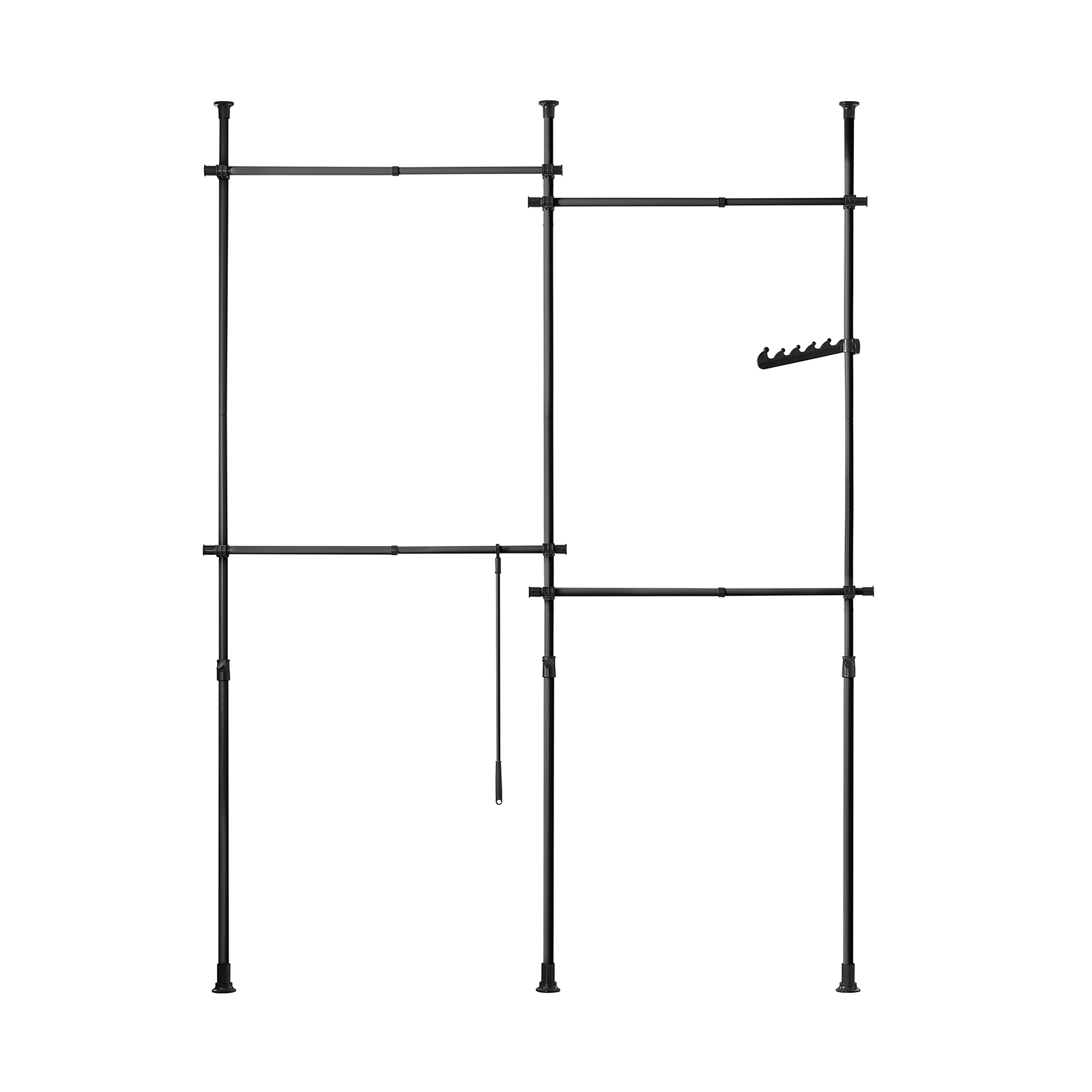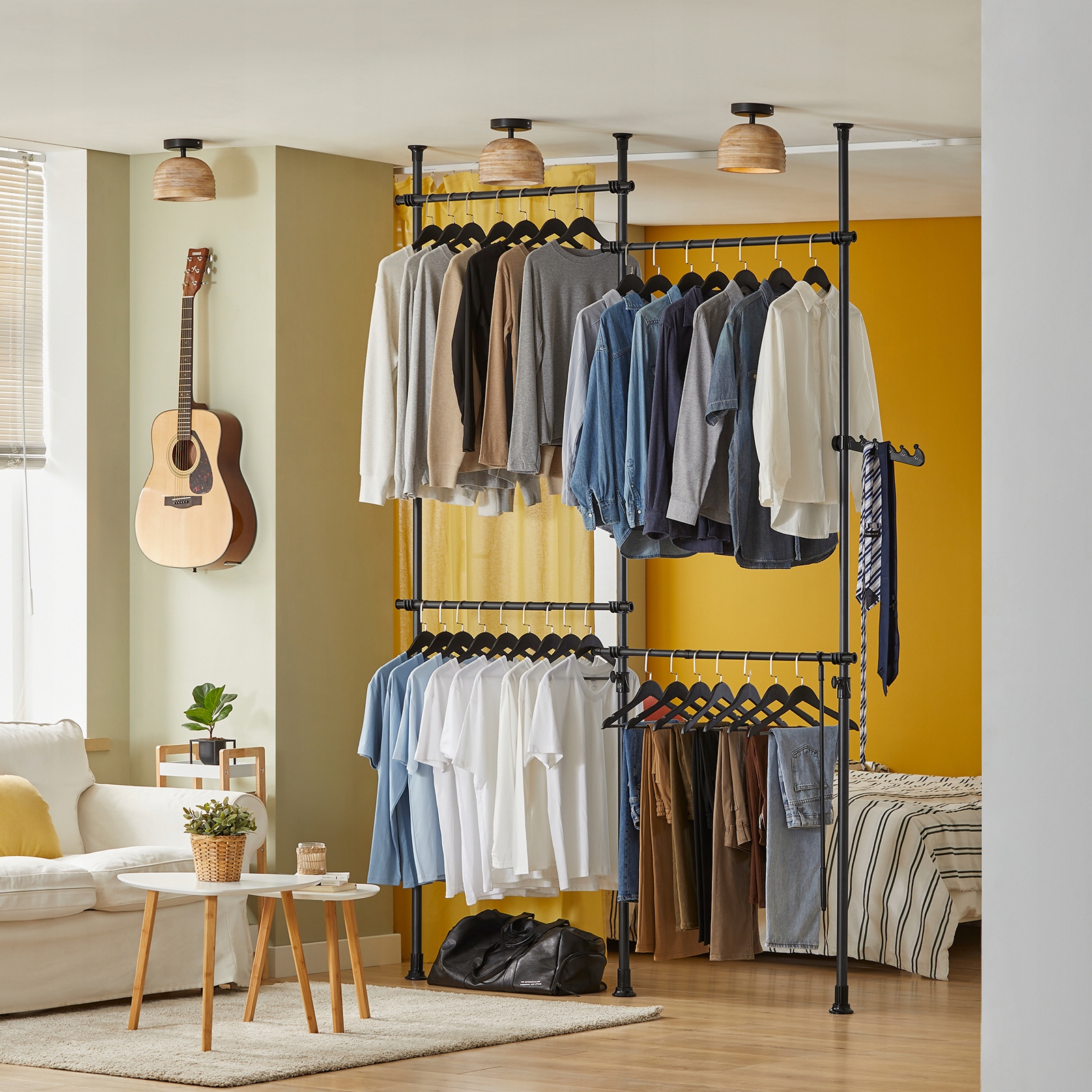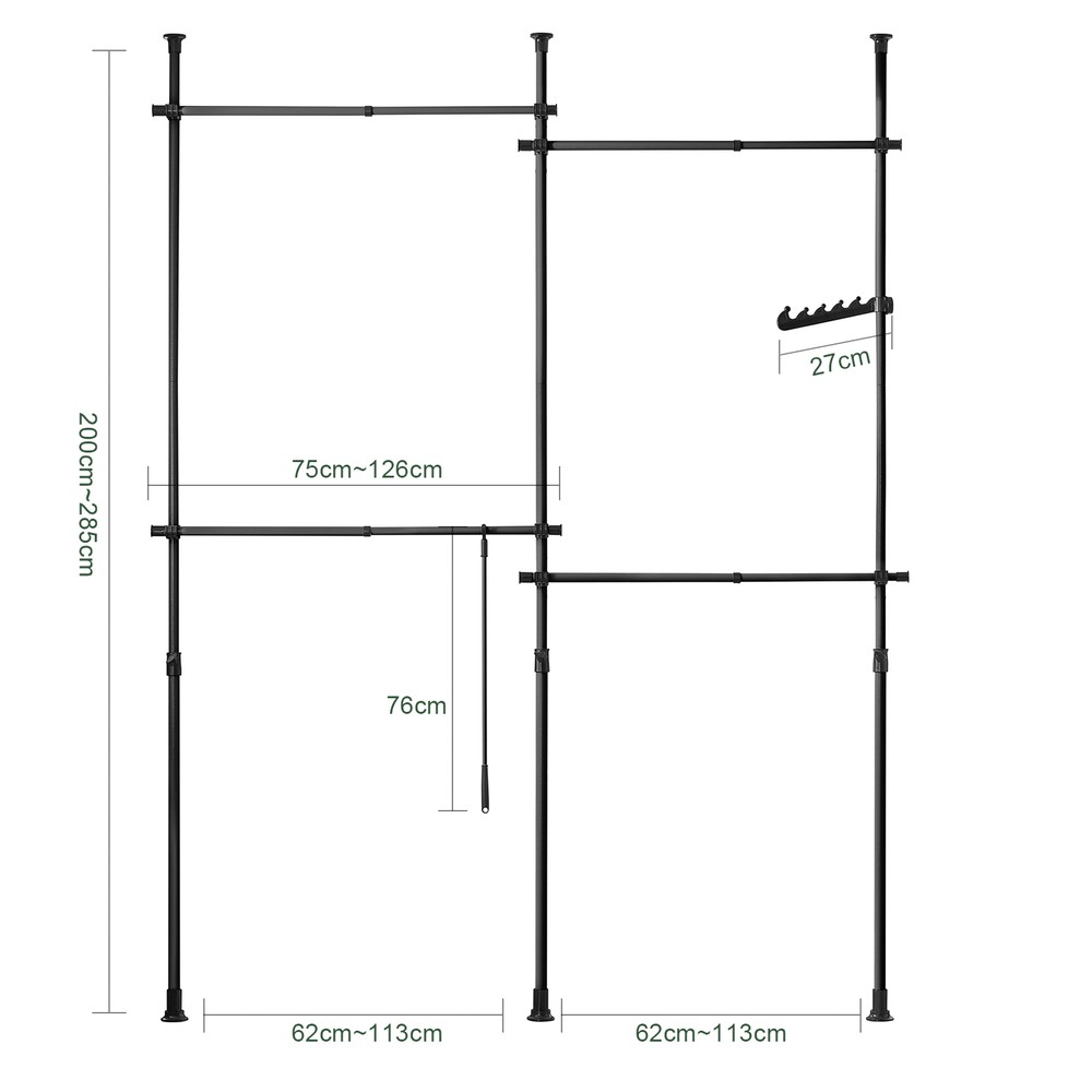 SoBuy:n kattava vaatejärjestelmä yhdistää pohjoismaisen minimalistisen designin ja kestävän kehityksen. Tämä työkaluvapaa, porauston teleskooppihylly ratkaisee vaatehäkkisi kauniisti ilman seinään poraamista.